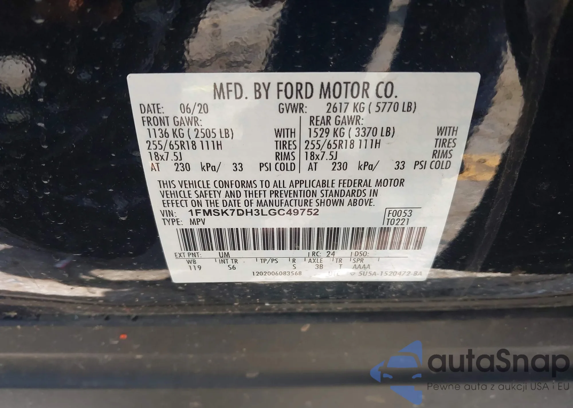 VIN: 1FMSK7DH3LGC49752