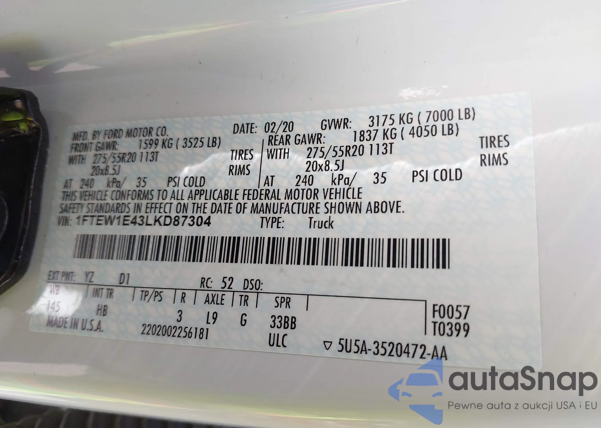 VIN: 1FTEW1E43LKD87304