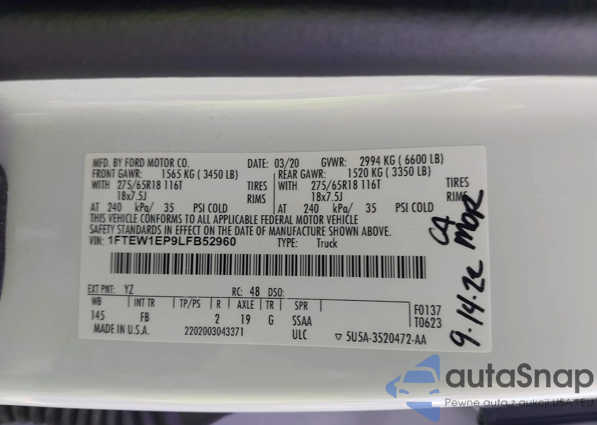 VIN: 1FTEW1EP9LFB52960