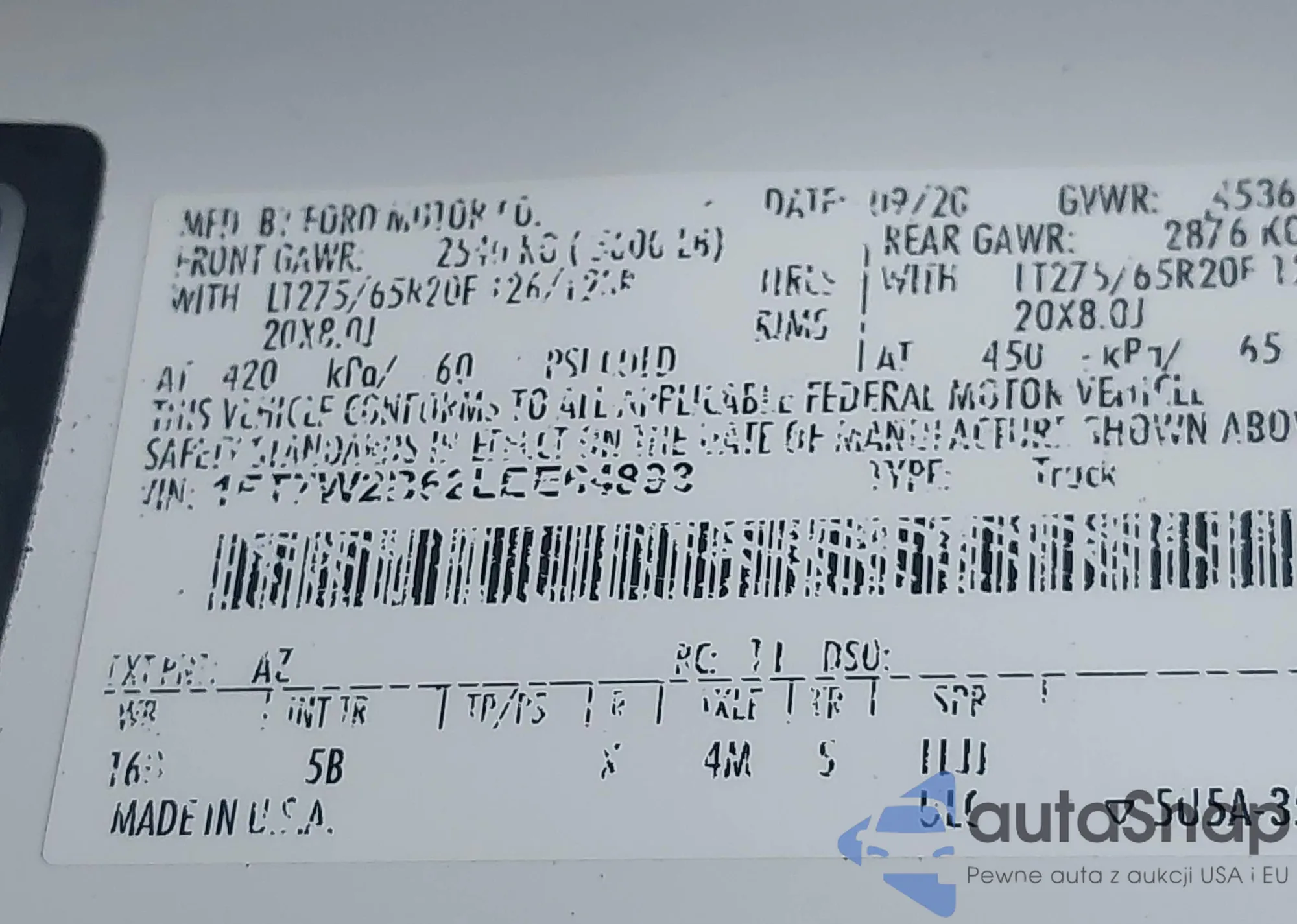 The car Ford F250 2020 (VIN 1FT7W2B62LEE64893) has not been auctioned before. The documents are clean, and the mileage matches or is below the market average. Sold by an insurance company – we recommend purchase. Delivery to the port will take approx. 6–8 weeks.