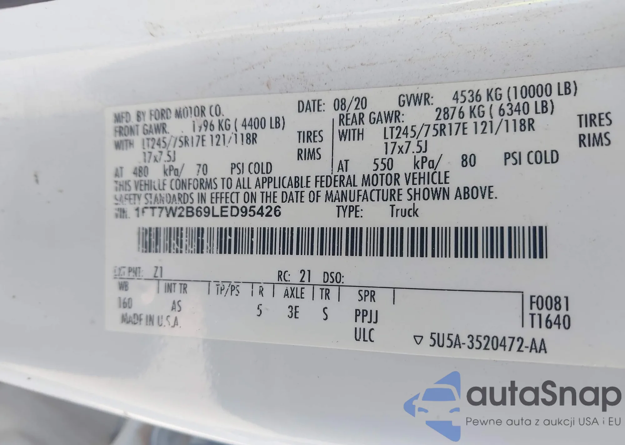 VIN: 1FT7W2B69LED95426