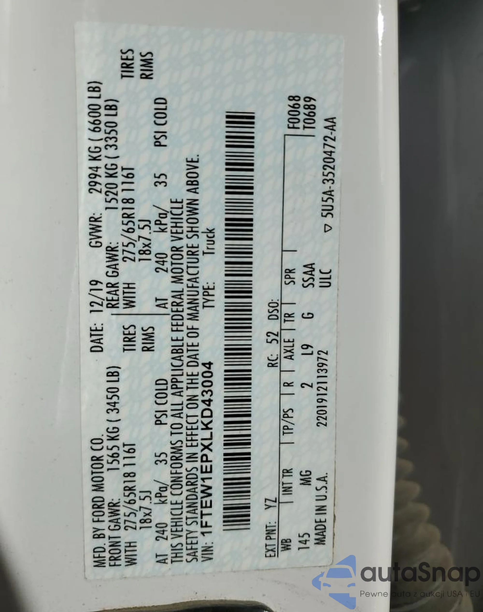 VIN: 1FTEW1EPXLKD43004