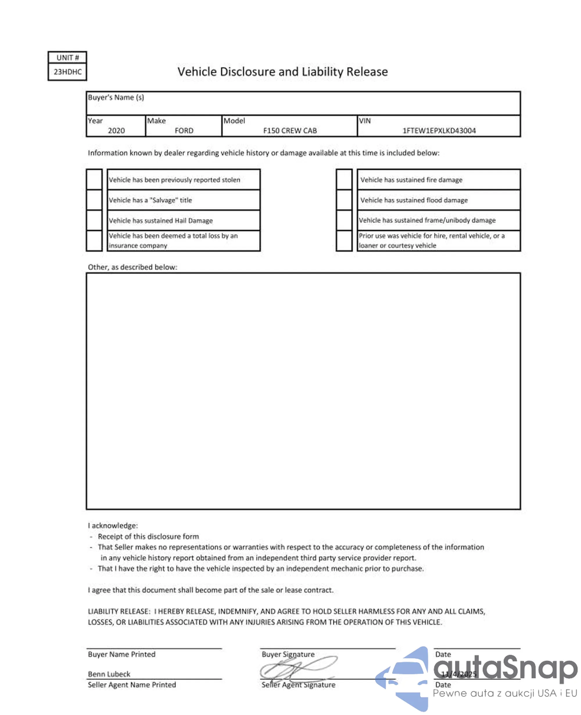 Auction CommissionThe IAAI / Copart platform fee depends on the lot value and includes various site operation costs$1,160