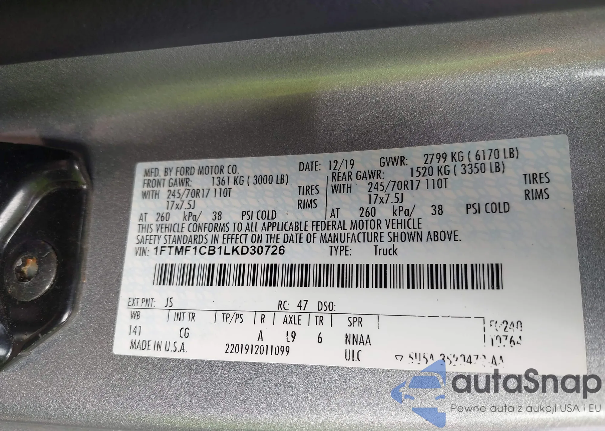 • VIN: 1FTMF1CB1LKD30726