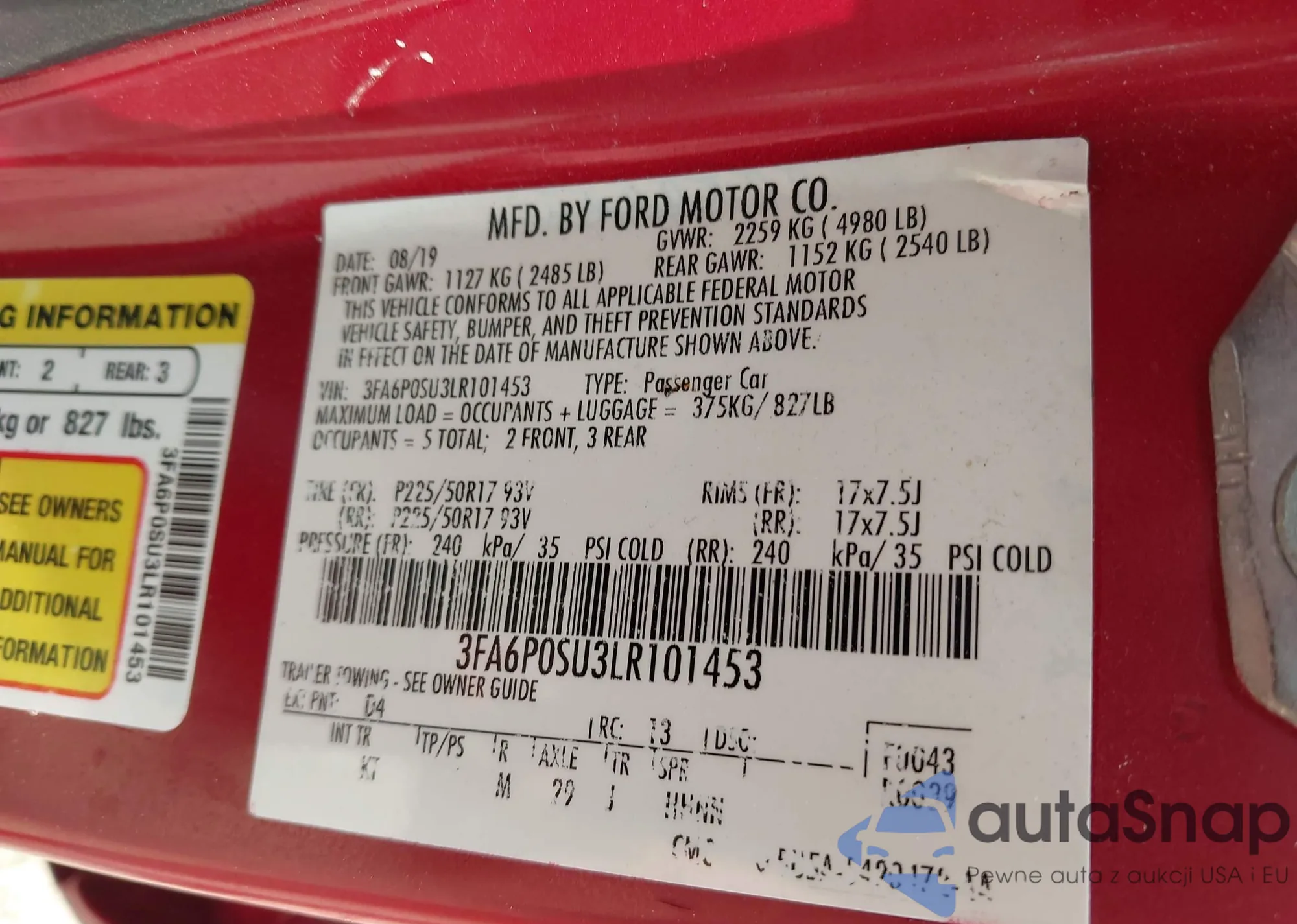 VIN: 3FA6P0SU3LR101453