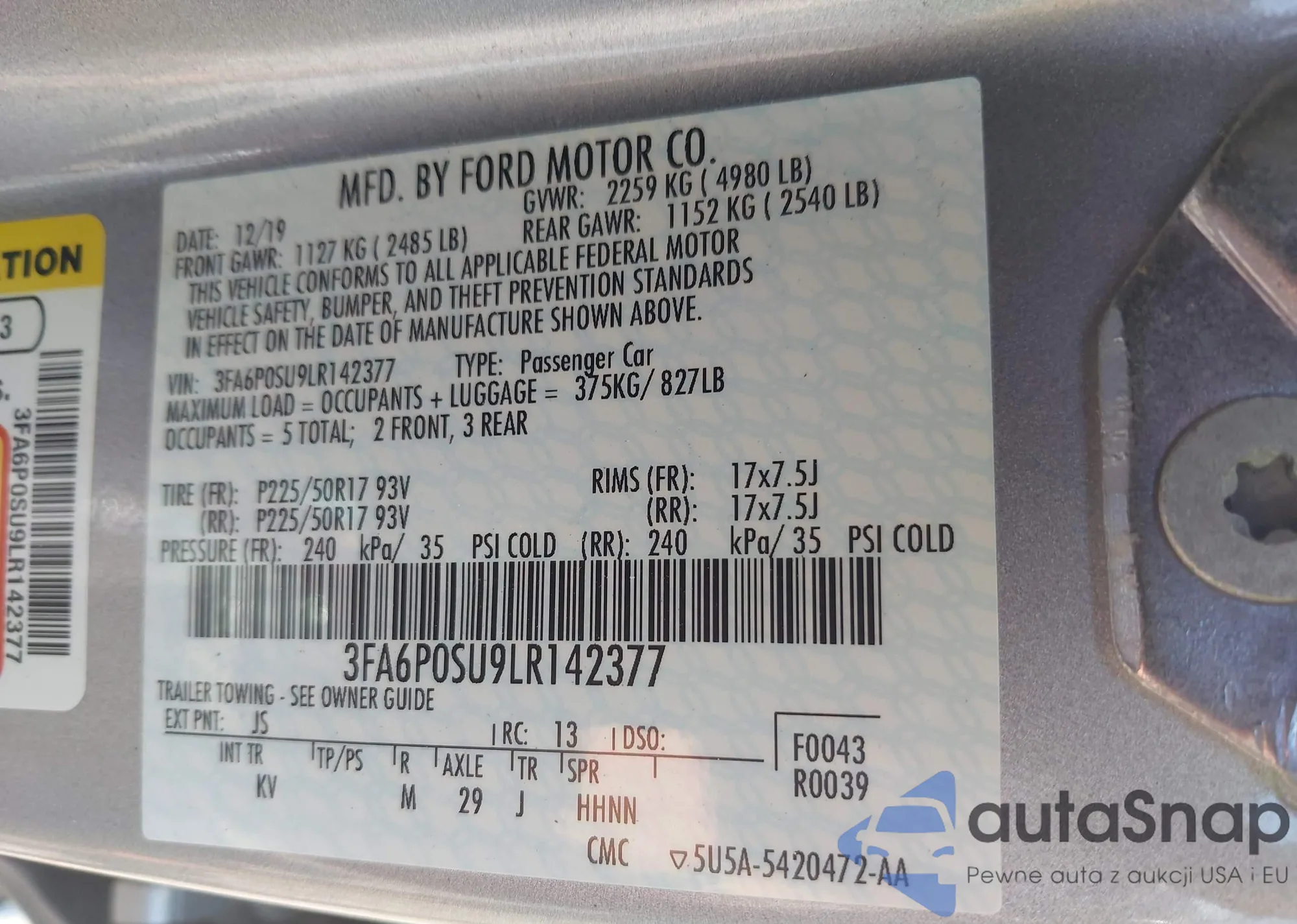 VIN: 3FA6P0SU9LR142377