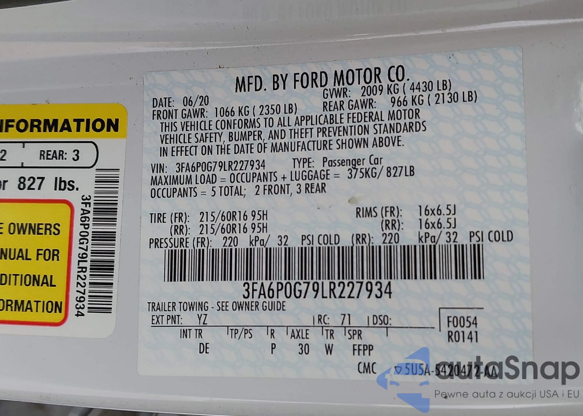 The car Ford Fusion 2020 (VIN 3FA6P0G79LR227934) has not been auctioned before. The documents are clean, and the mileage matches or is below the market average. Sold by an insurance company – we recommend purchase. Delivery to the port will take approx. 6–8 weeks.