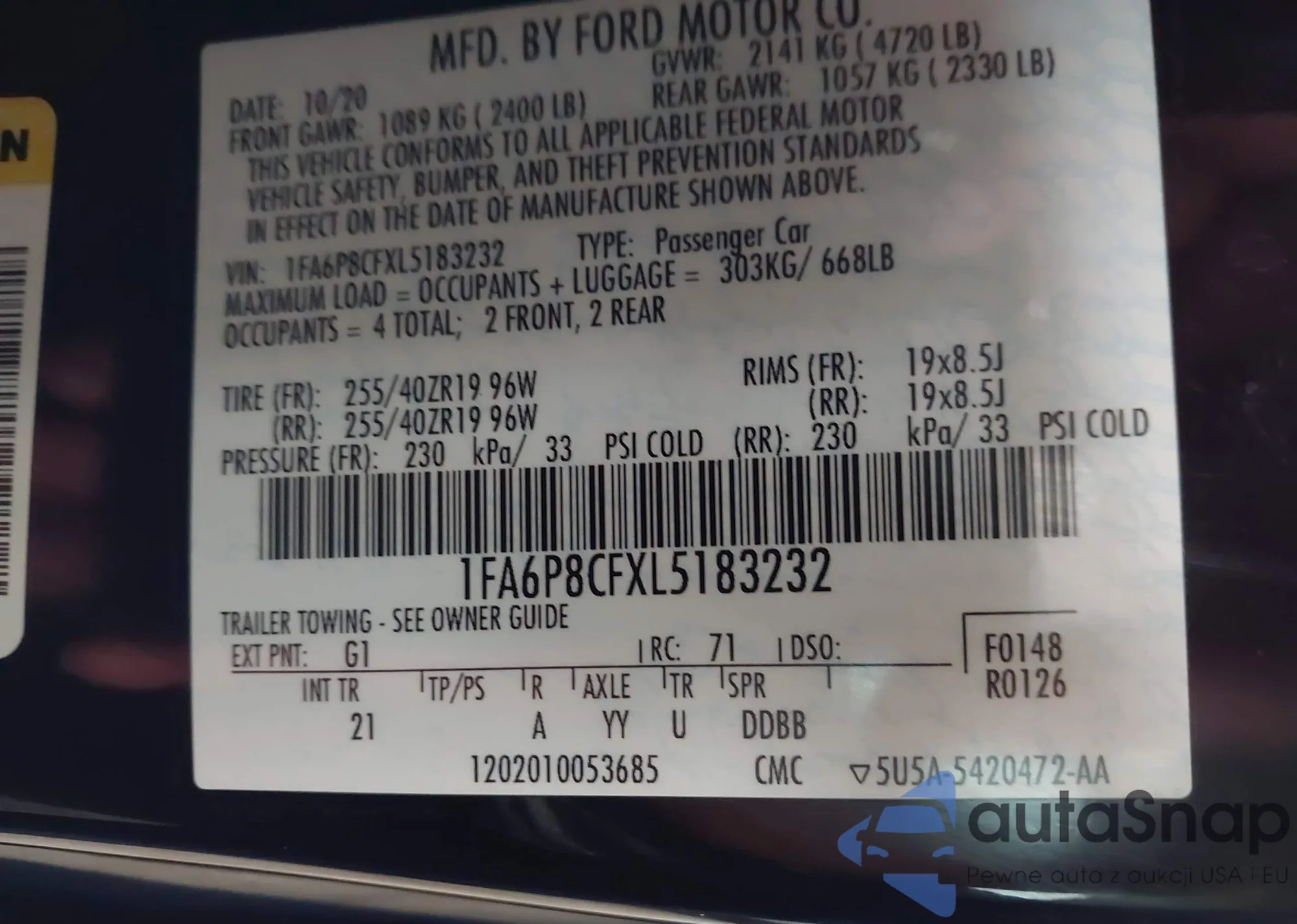 VIN: 1FA6P8CFXL5183232