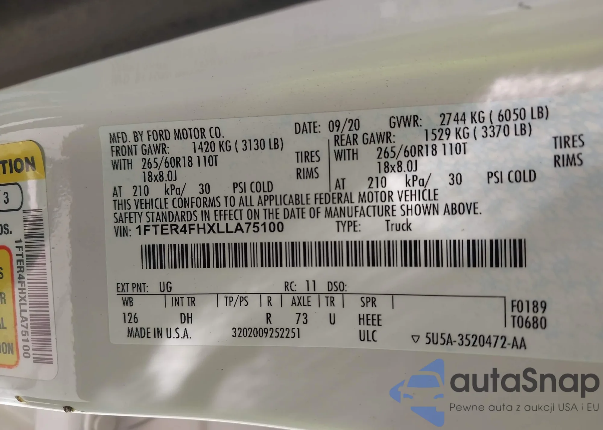 The car Ford Ranger 2020 (VIN 1FTER4FHXLLA75100) has already been auctioned 1 times and/or is sold by an unverified seller. We recommend checking the Carfax report and confirming registration possibilities before purchase.