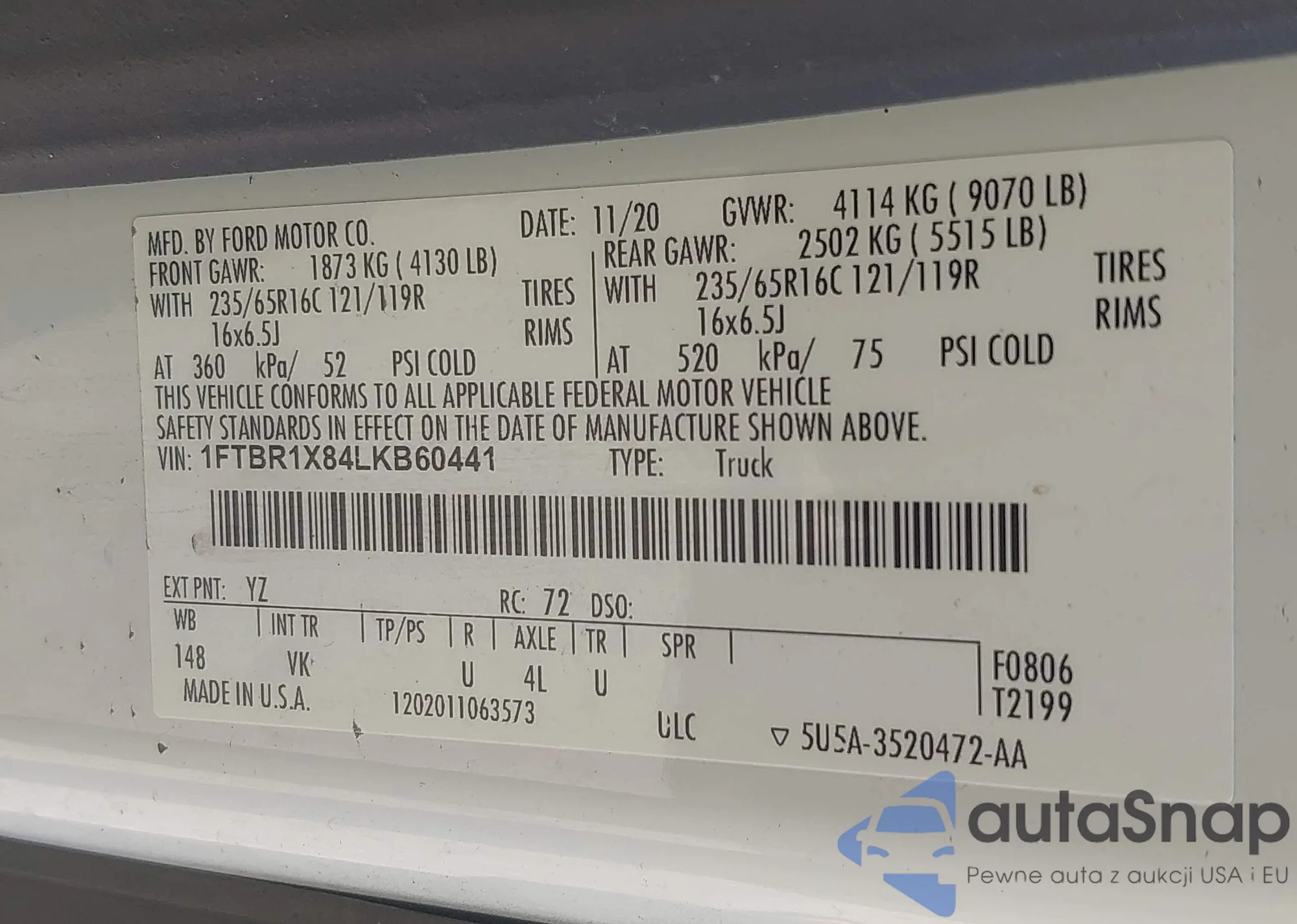 VIN: 1FTBR1X84LKB60441