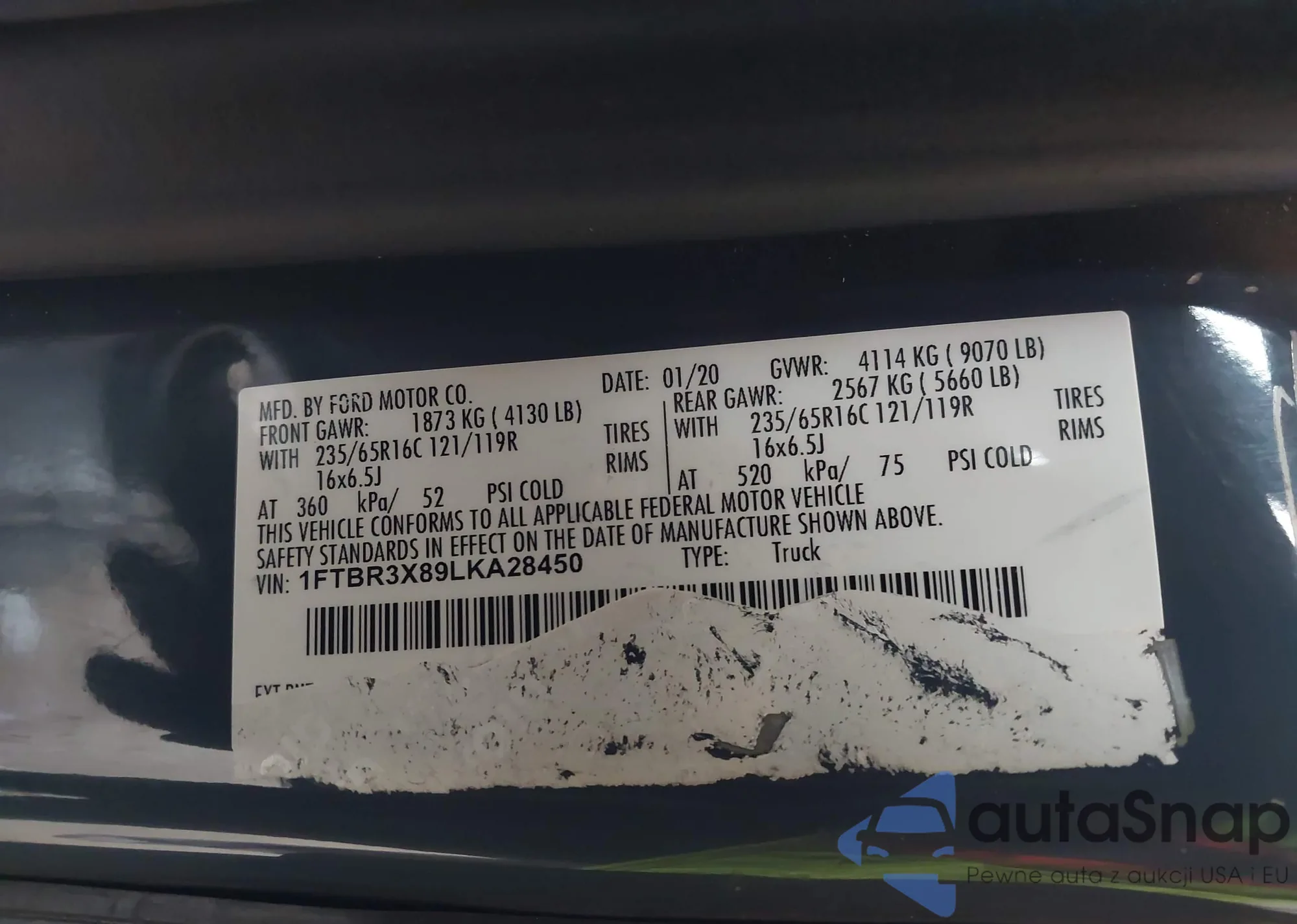 • VIN: 1FTBR3X89LKA28450