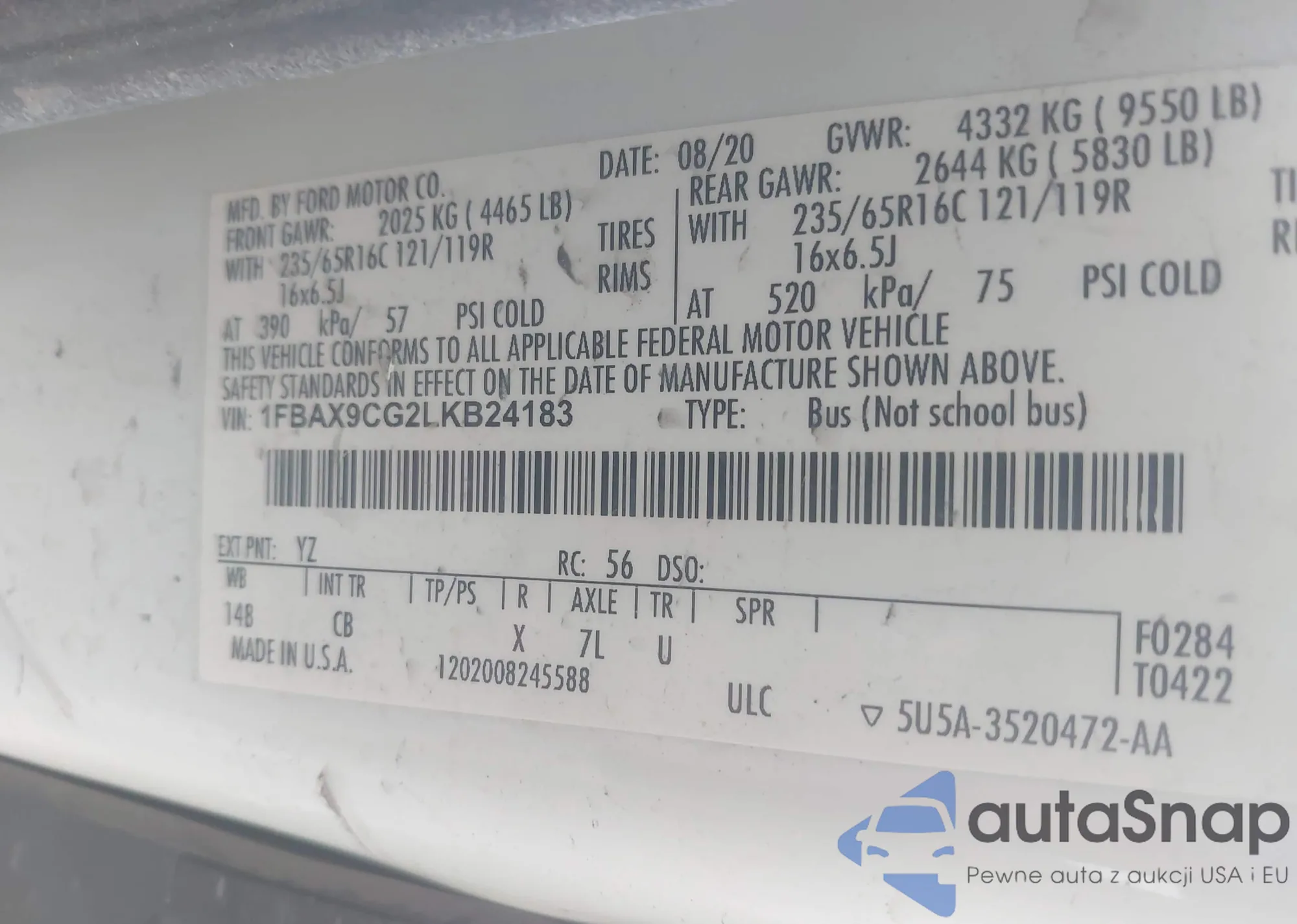 VIN: 1FBAX9CG2LKB24183