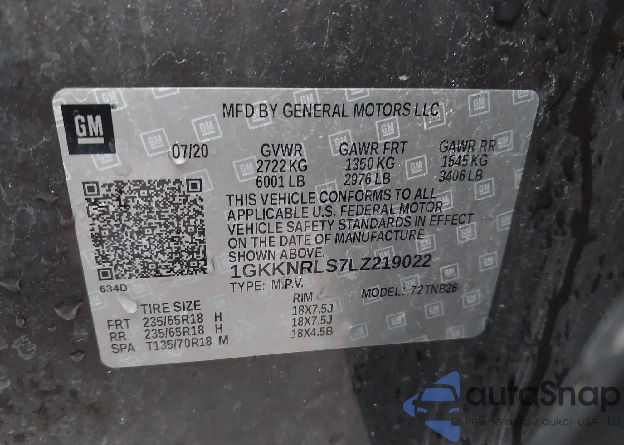 VIN: 1GKKNRLS7LZ219022