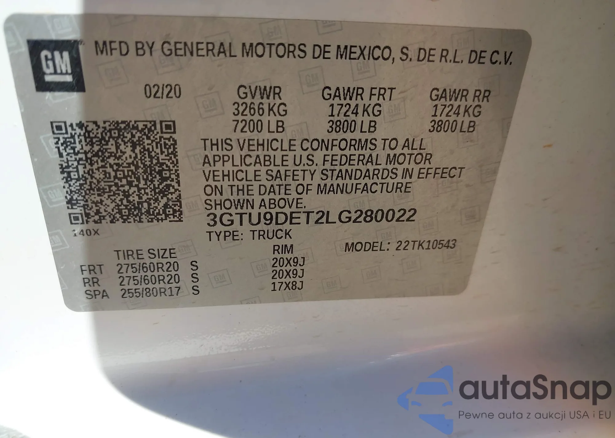 VIN: 3GTU9DET2LG280022