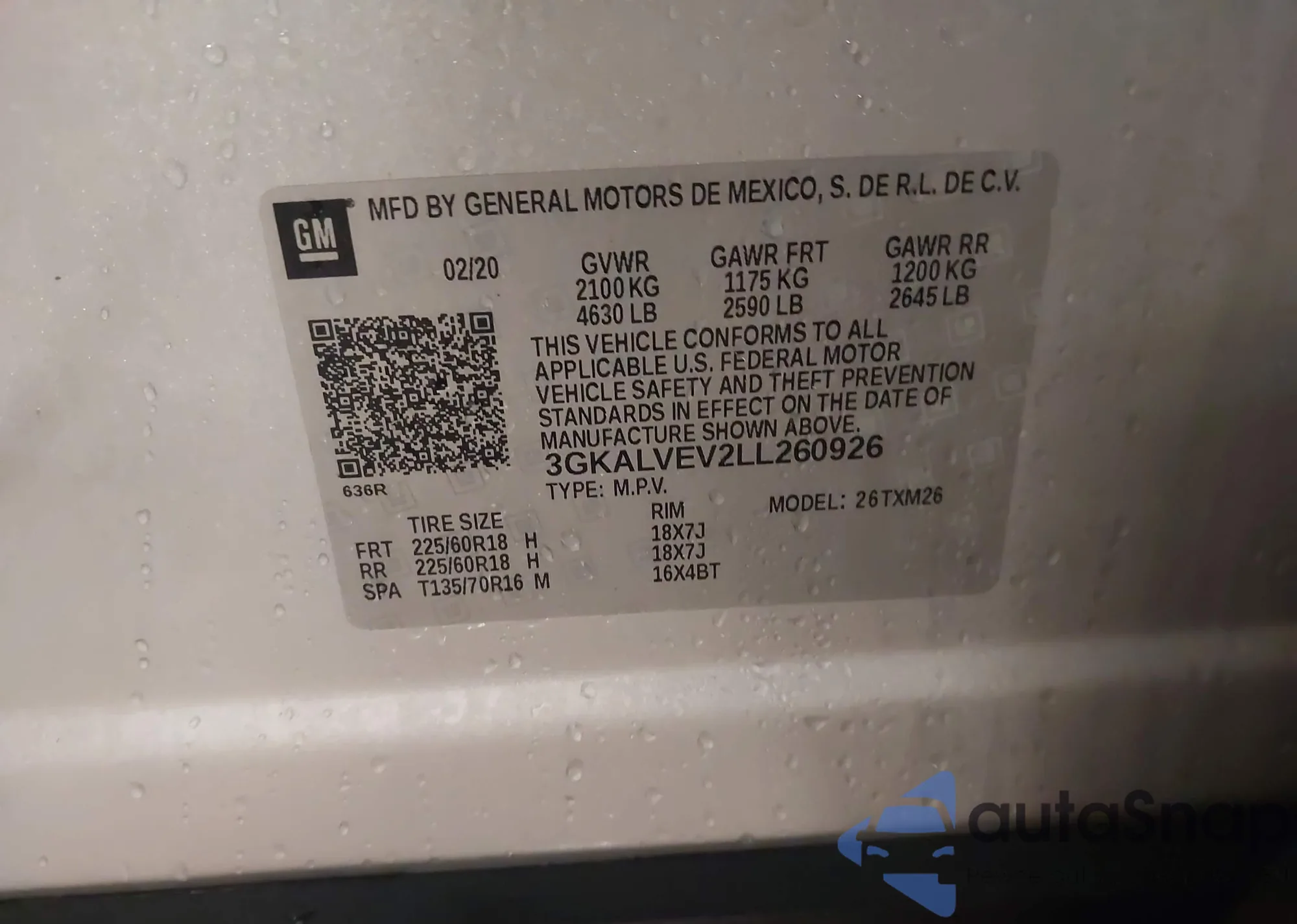 The car GMC Terrain 2020 (VIN 3GKALVEV2LL260926) has not been auctioned before. The documents are clean, and the mileage matches or is below the market average. Sold by an insurance company – we recommend purchase. Delivery to the port will take approx. 6–8 weeks.