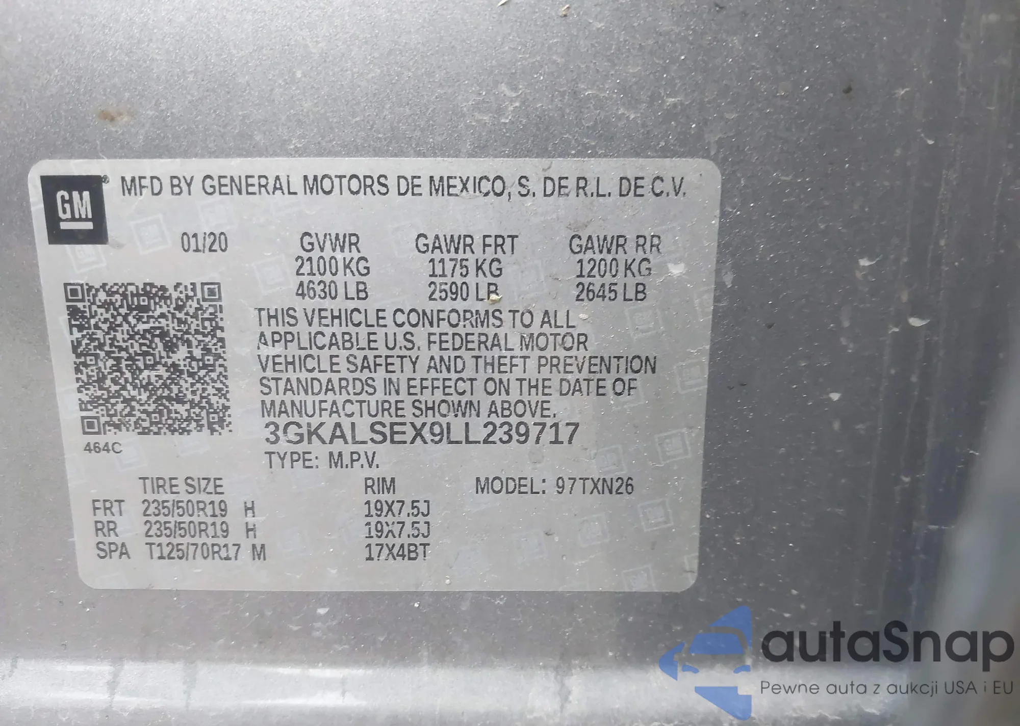 VIN: 3GKALSEX9LL239717