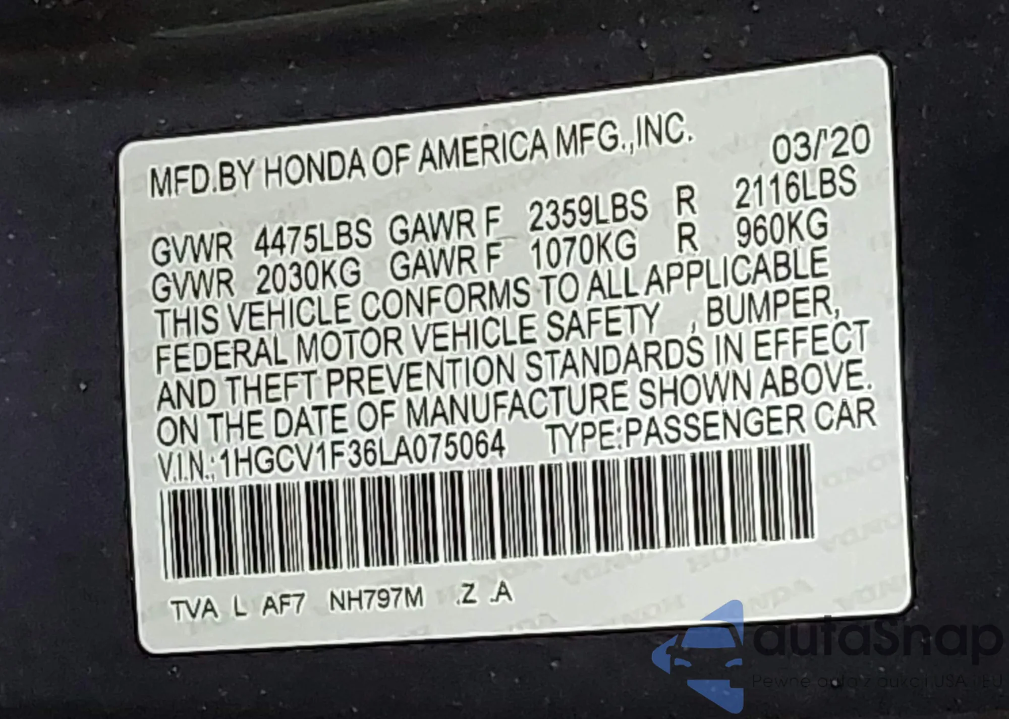 VIN: 1HGCV1F36LA075064