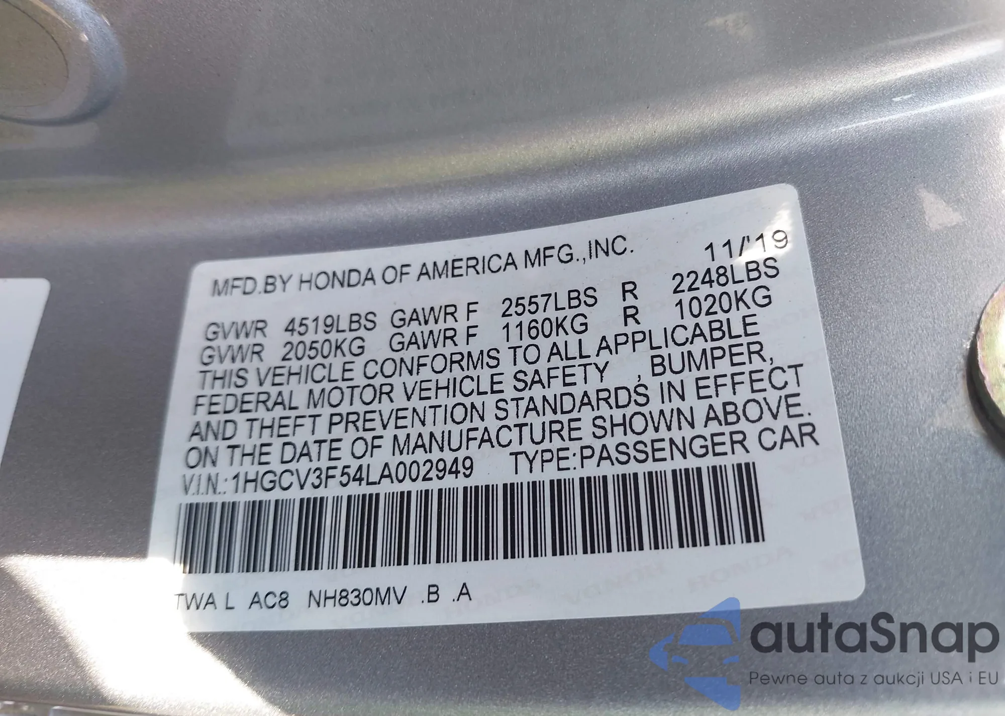 VIN: 1HGCV3F54LA002949