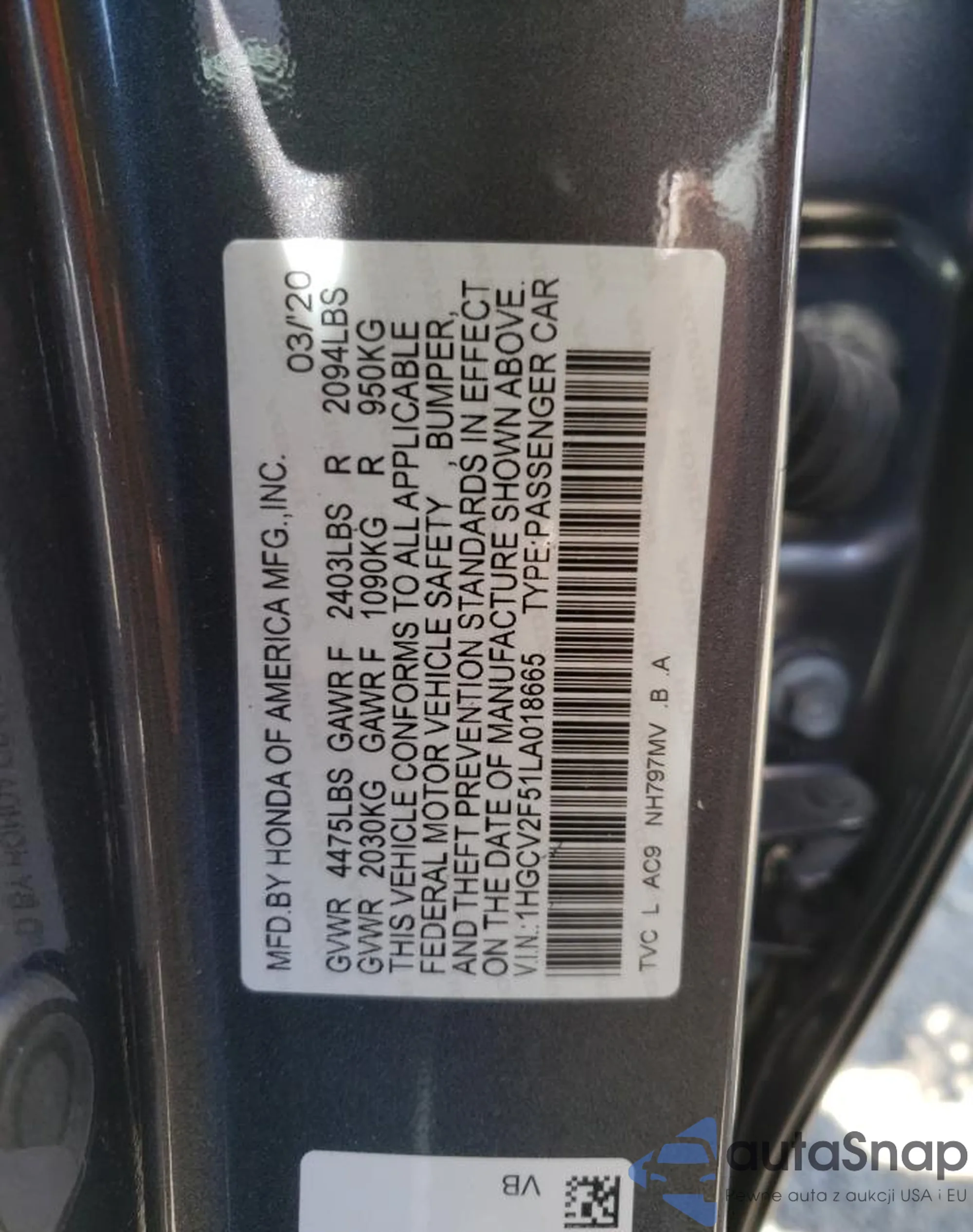 VIN: 1HGCV2F51LA018665