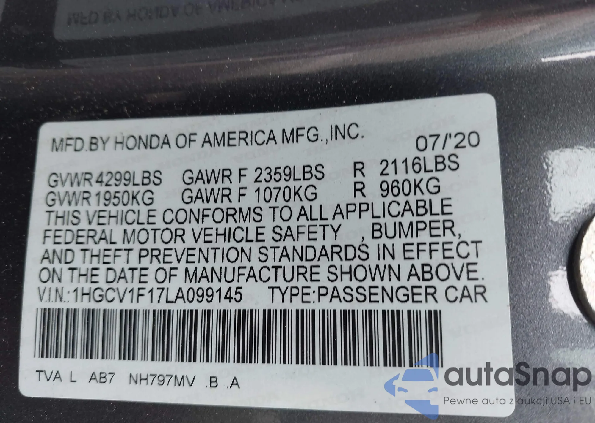 VIN: 1HGCV1F17LA099145