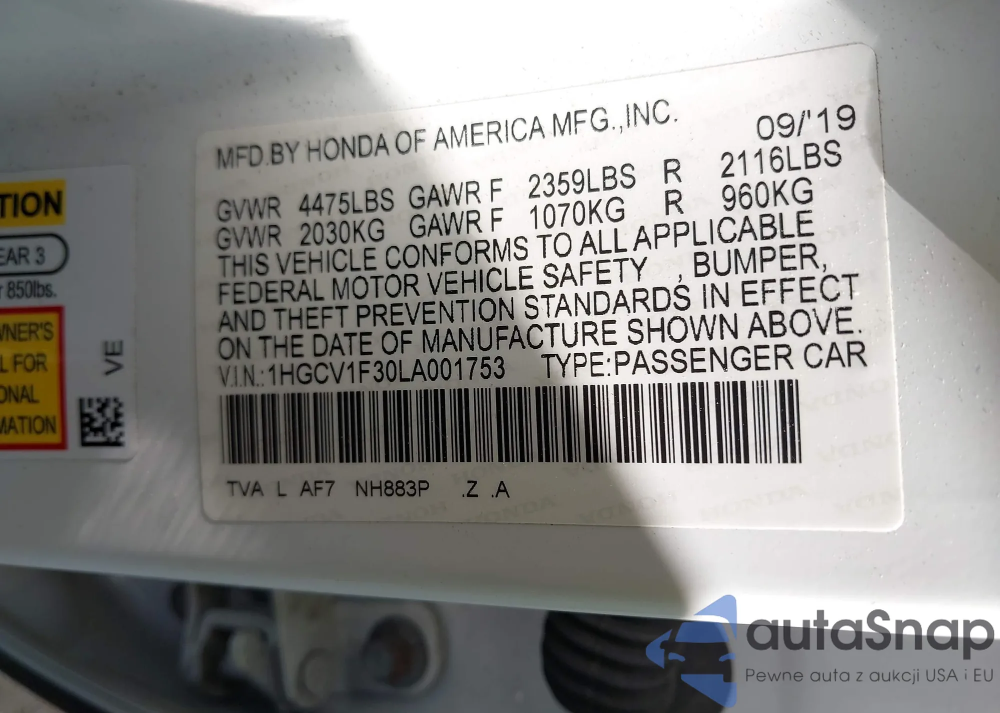 VIN: 1HGCV1F30LA001753