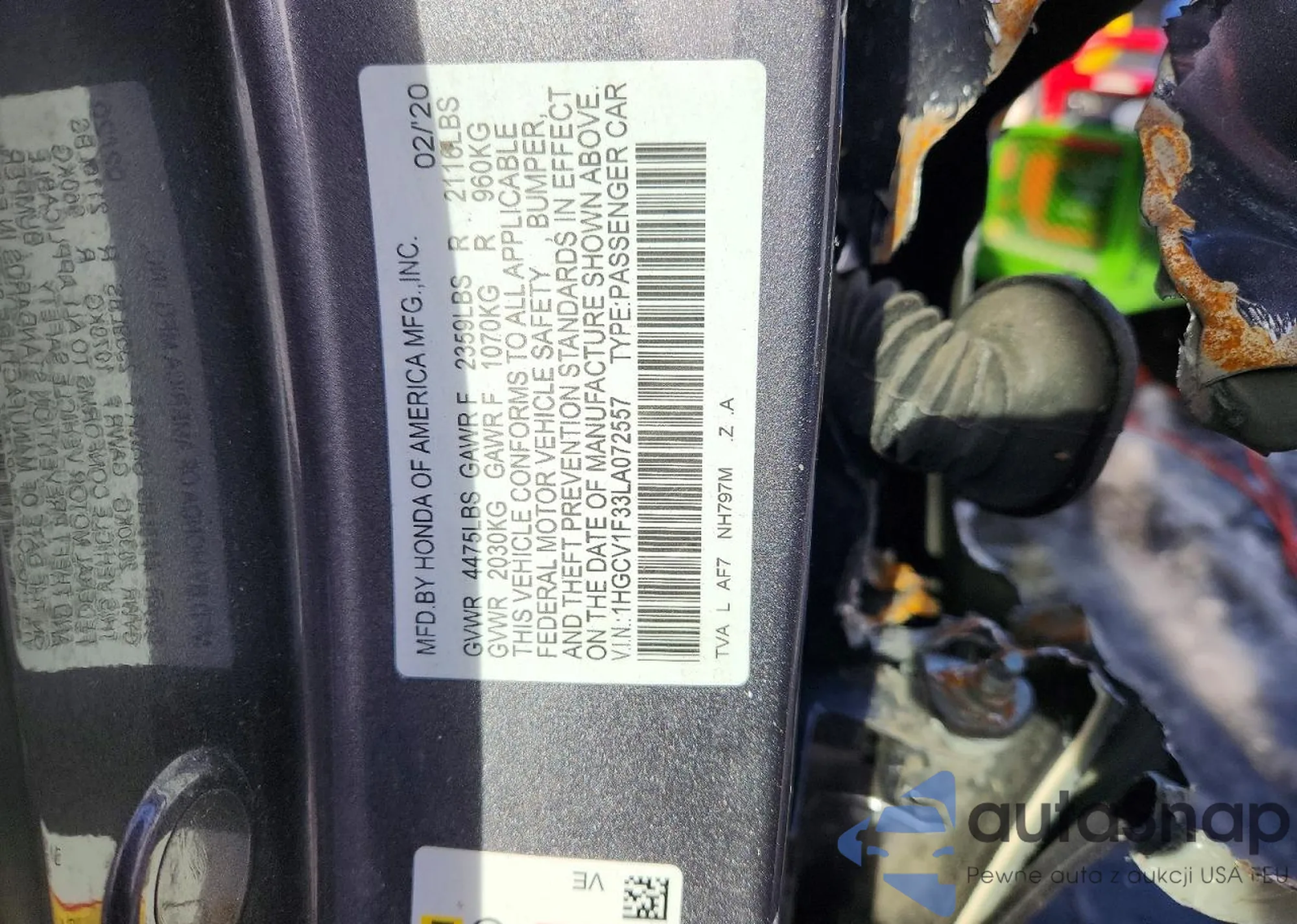 The car Honda Accord 2020 (VIN 1HGCV1F33LA072557) has not been auctioned before. The documents are clean, and the mileage matches or is below the market average. Sold by an insurance company – we recommend purchase. Delivery to the port will take approx. 6–8 weeks.