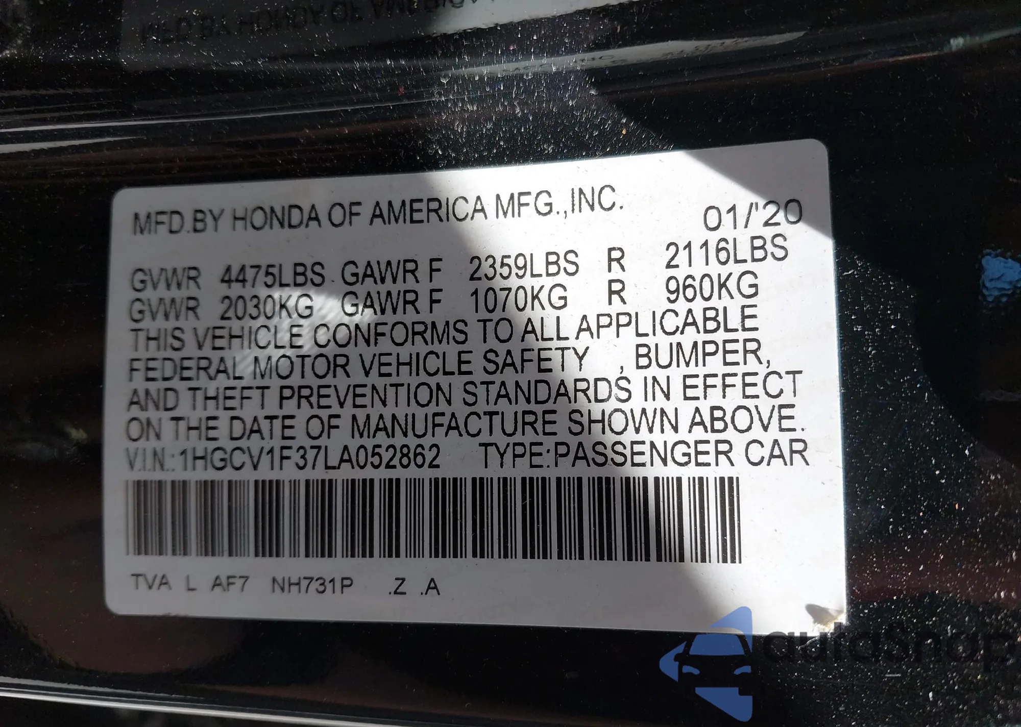 VIN: 1HGCV1F37LA052862