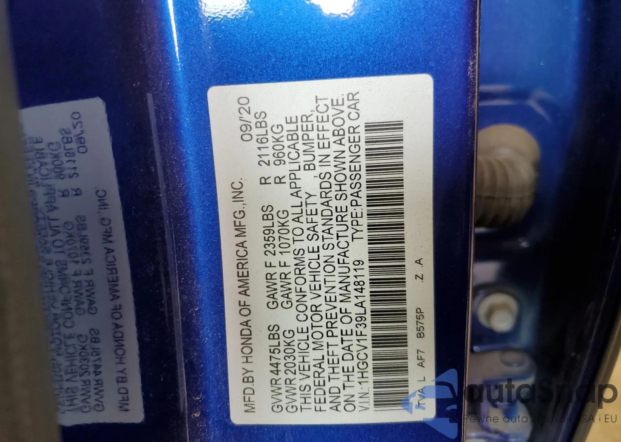 VIN: 1HGCV1F39LA148119