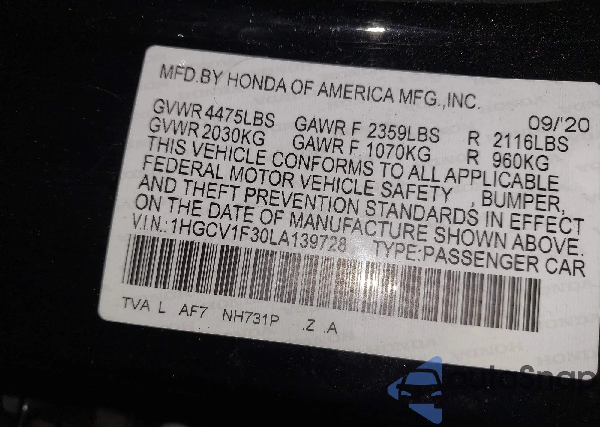 VIN: 1HGCV1F30LA139728