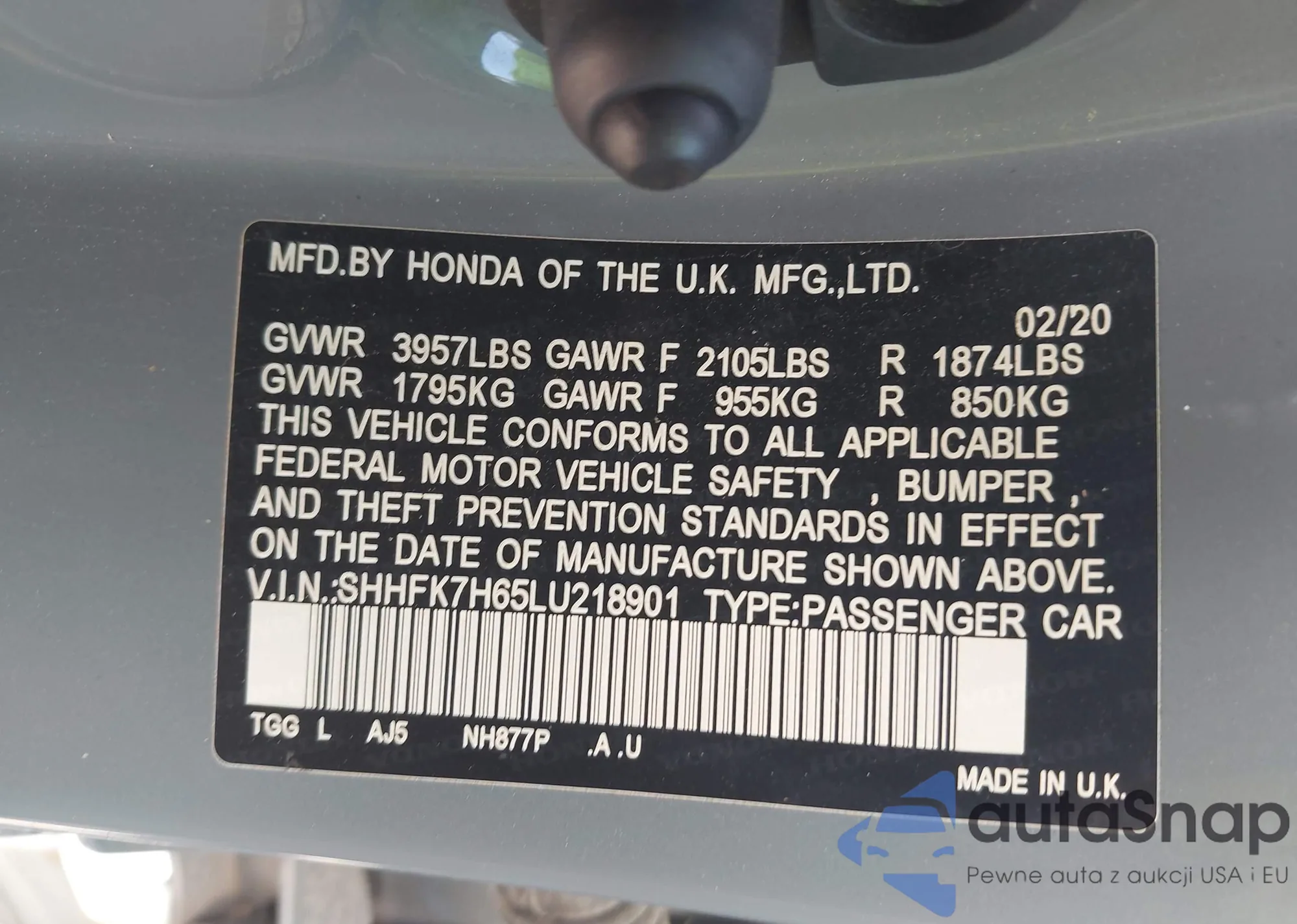 VIN: SHHFK7H65LU218901