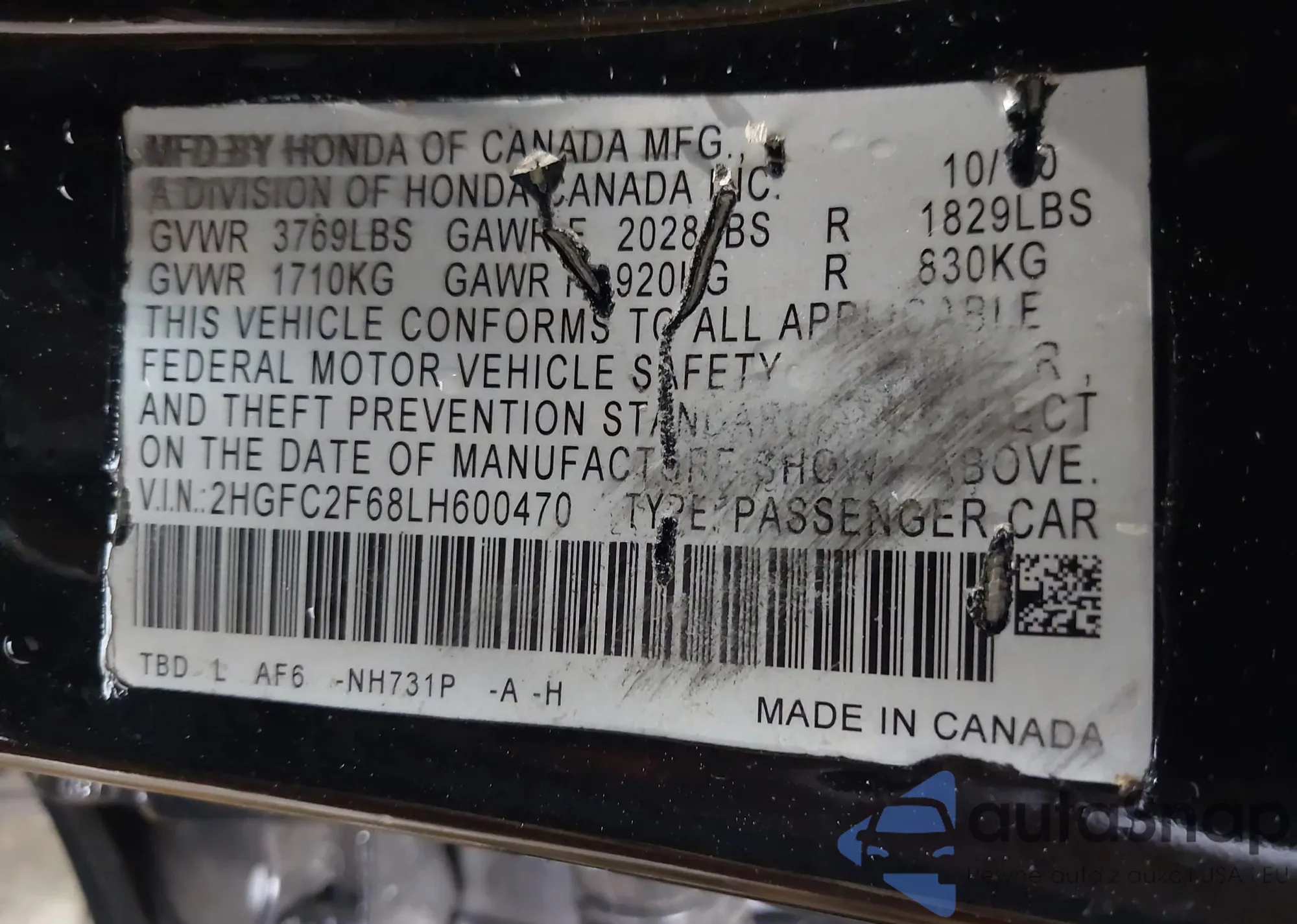 VIN: 2HGFC2F68LH600470