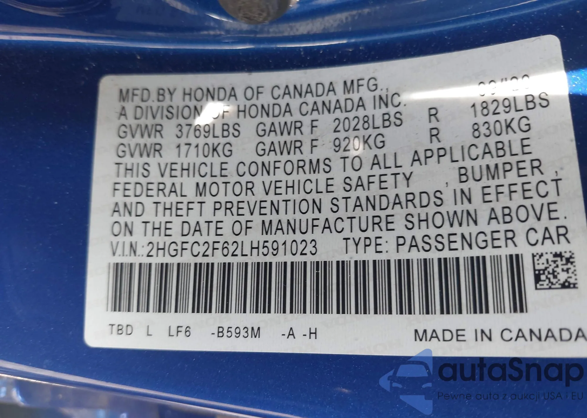 VIN: 2HGFC2F62LH591023
