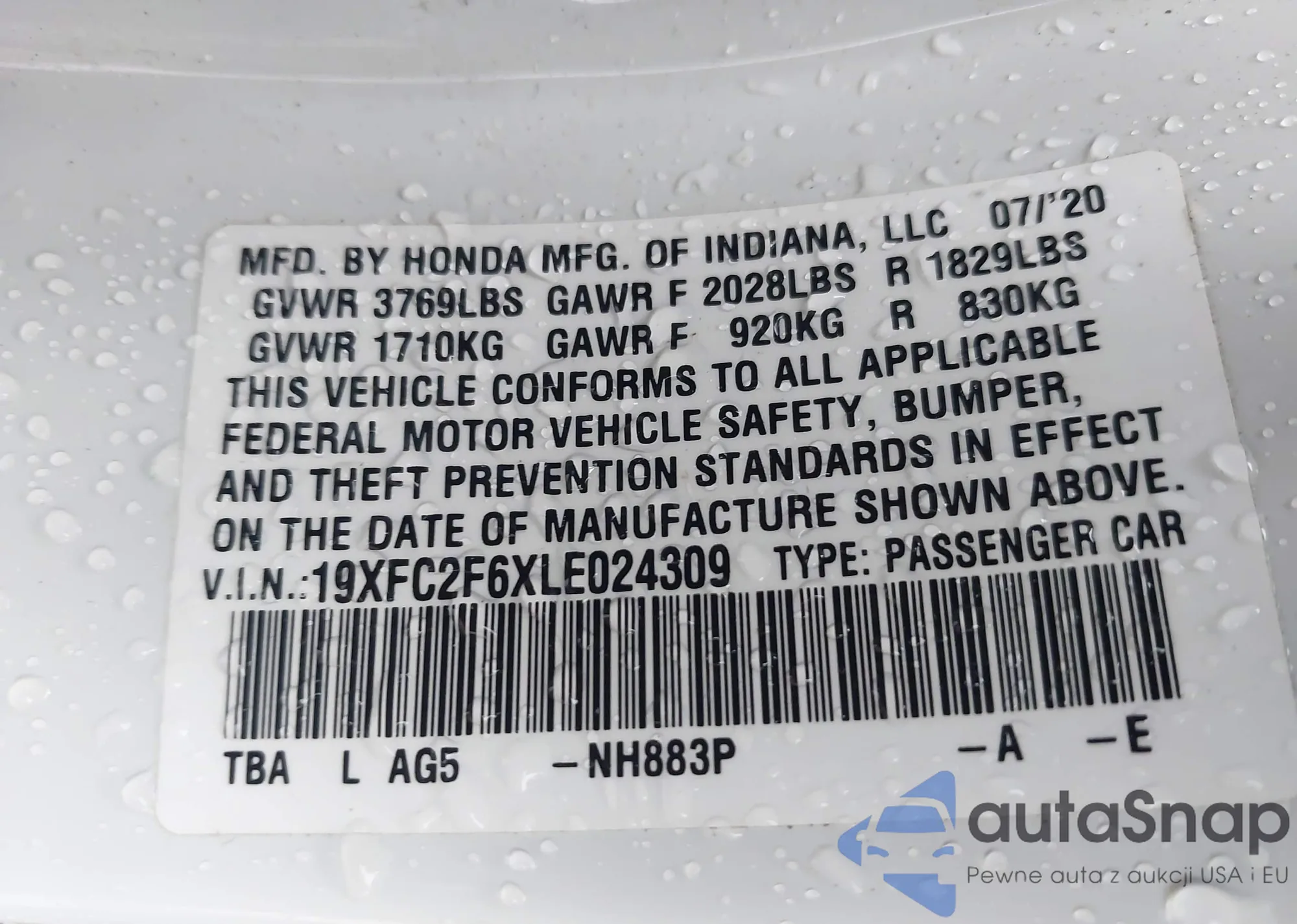 VIN: 19XFC2F6XLE024309