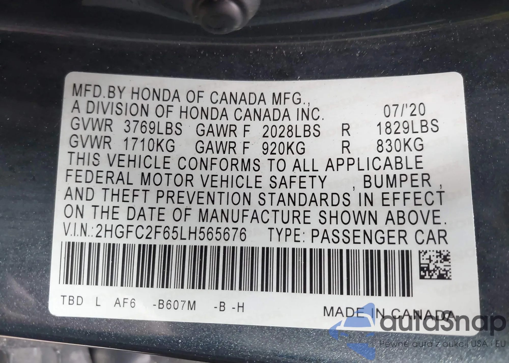 VIN: 2HGFC2F65LH565676