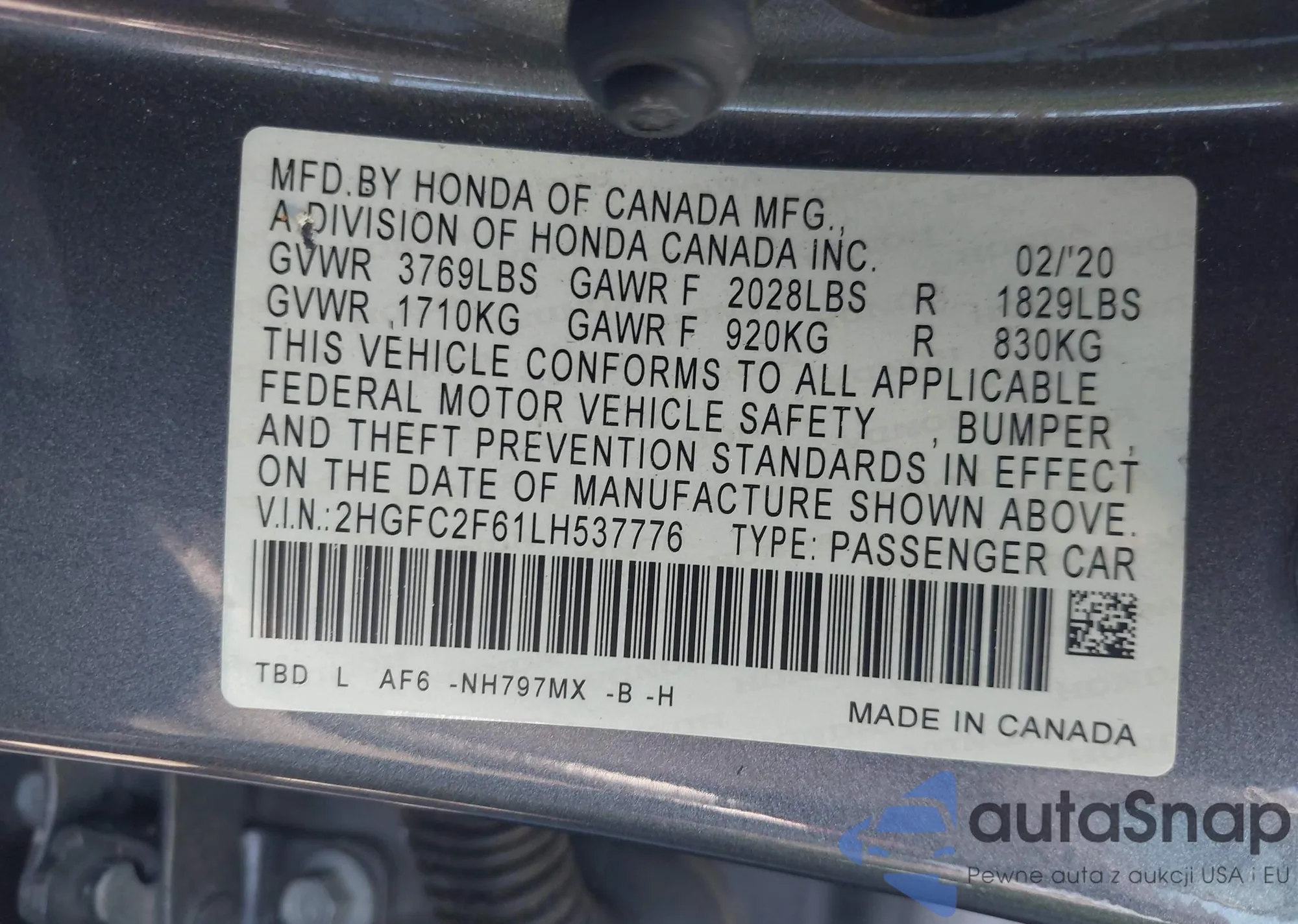 VIN: 2HGFC2F61LH537776
