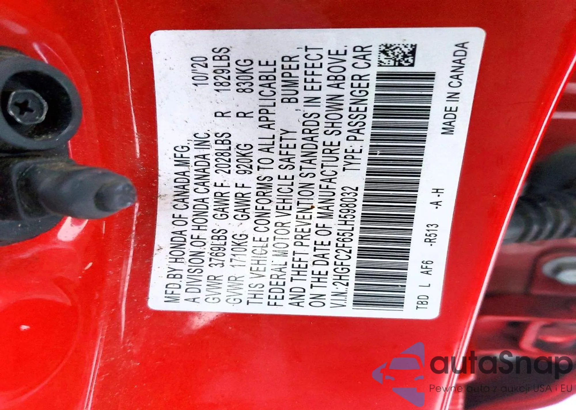 VIN: 2HGFC2F65LH598032