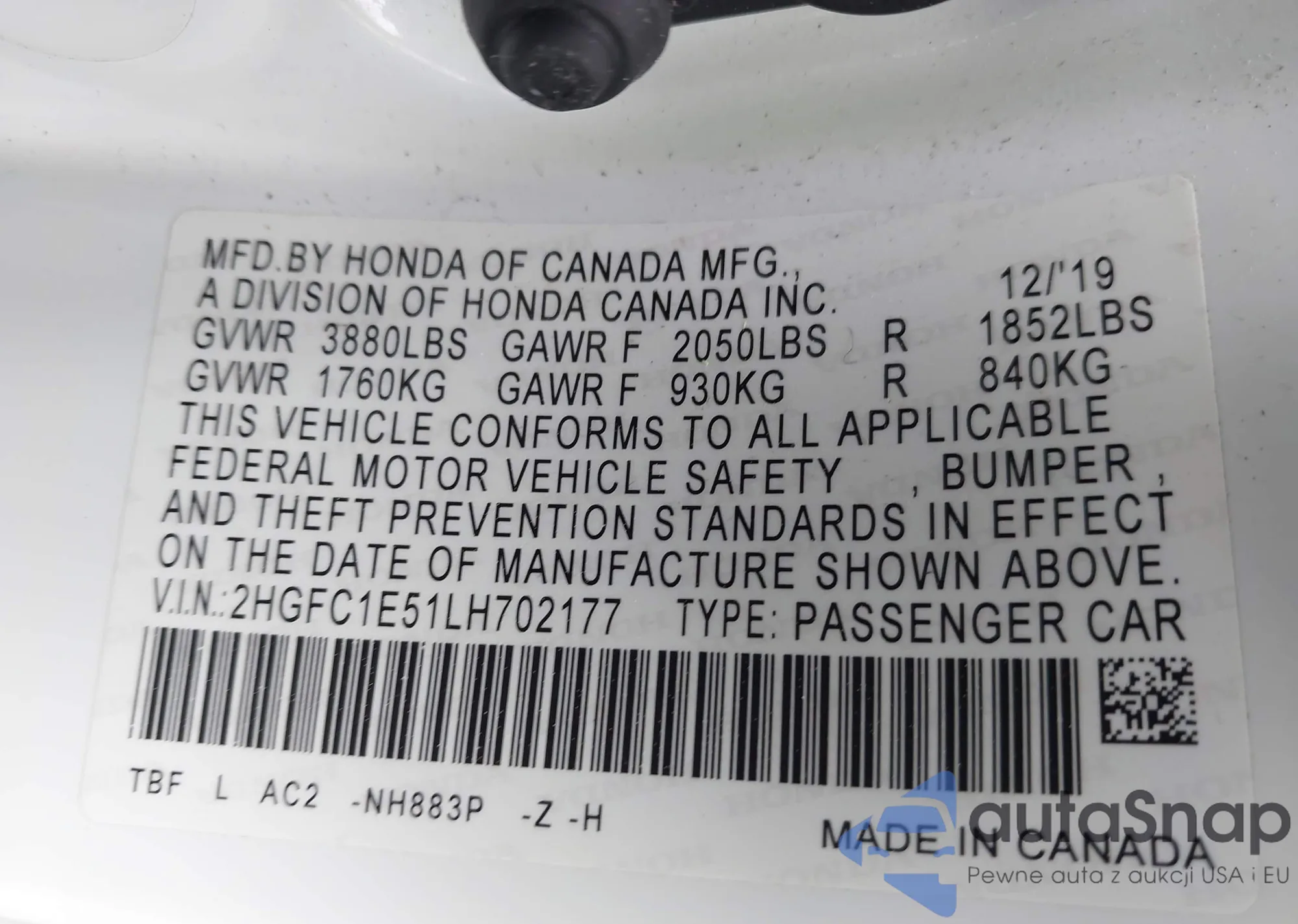 VIN: 2HGFC1E51LH702177