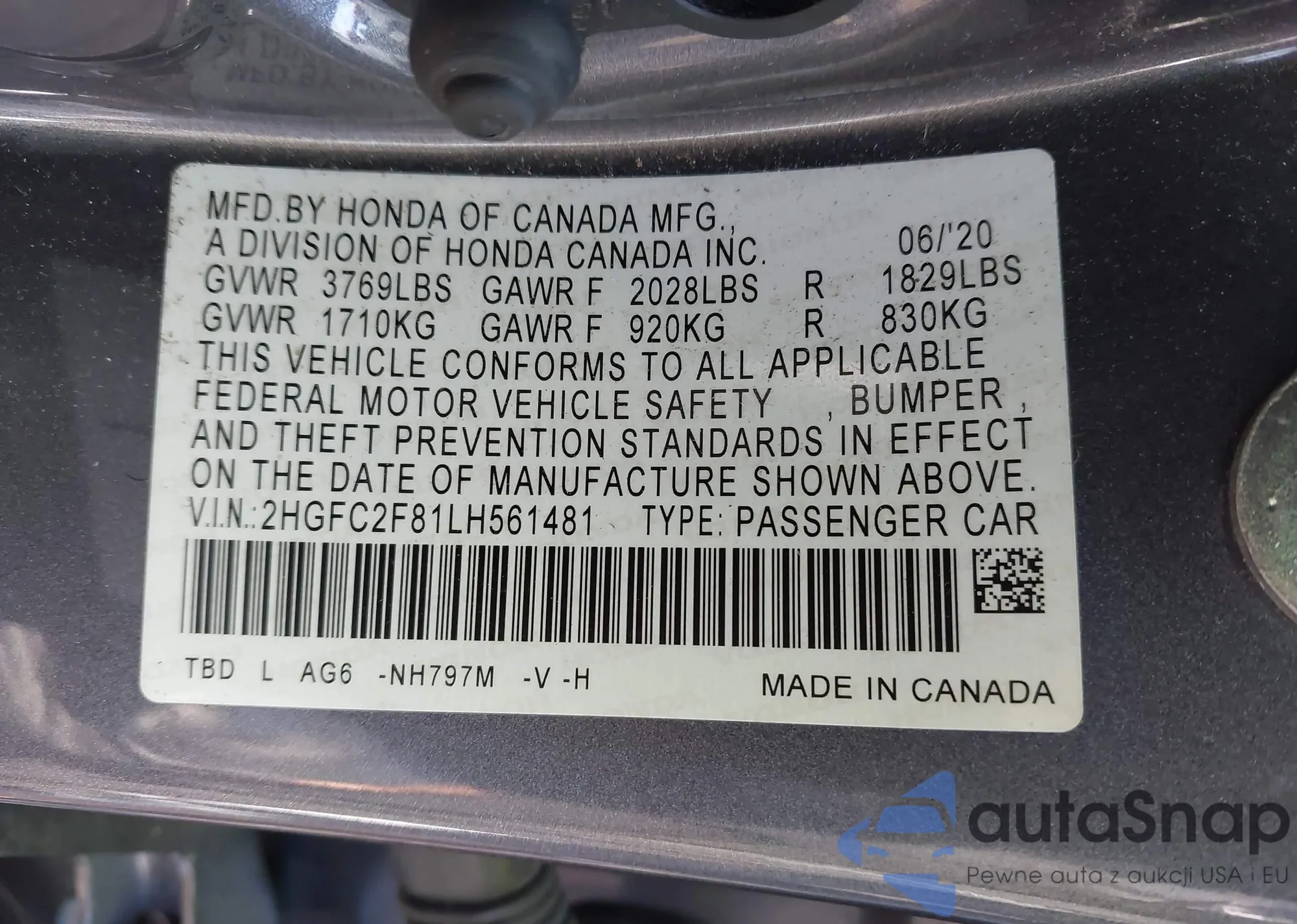 VIN: 2HGFC2F81LH561481