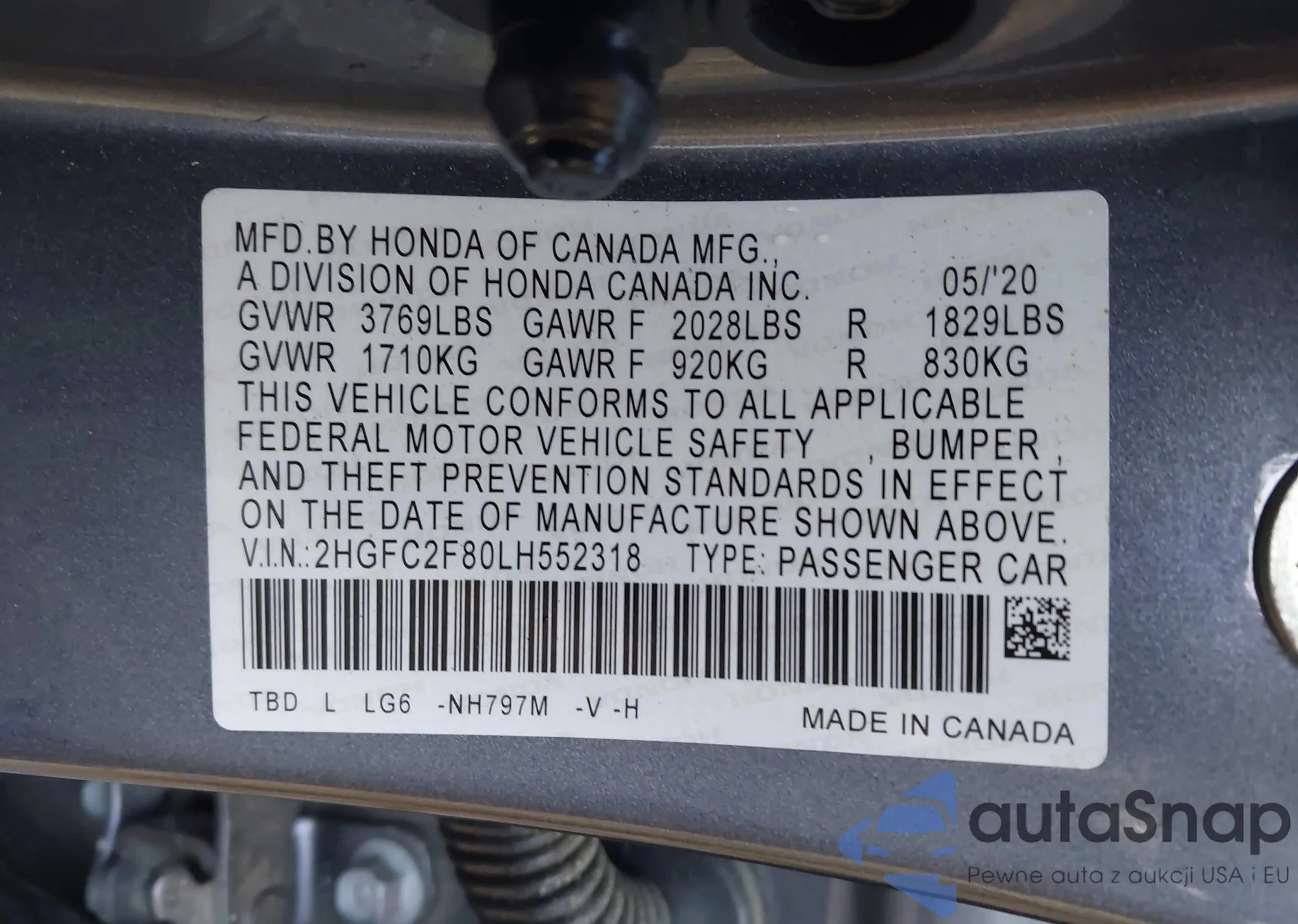 VIN: 2HGFC2F80LH552318
