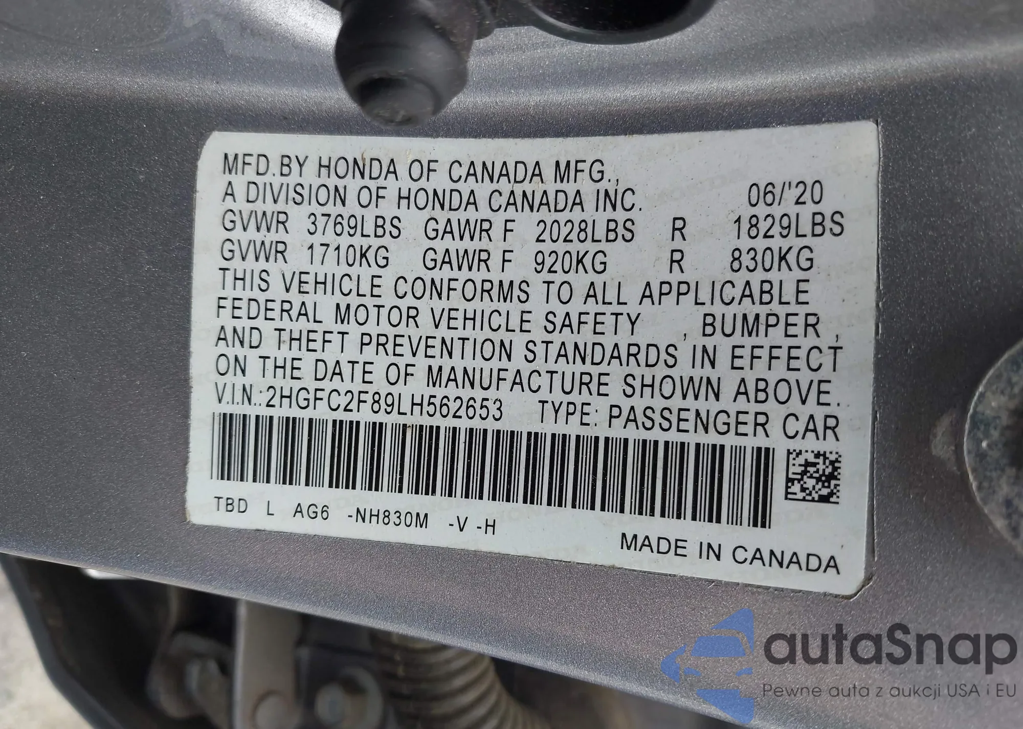 VIN: 2HGFC2F89LH562653