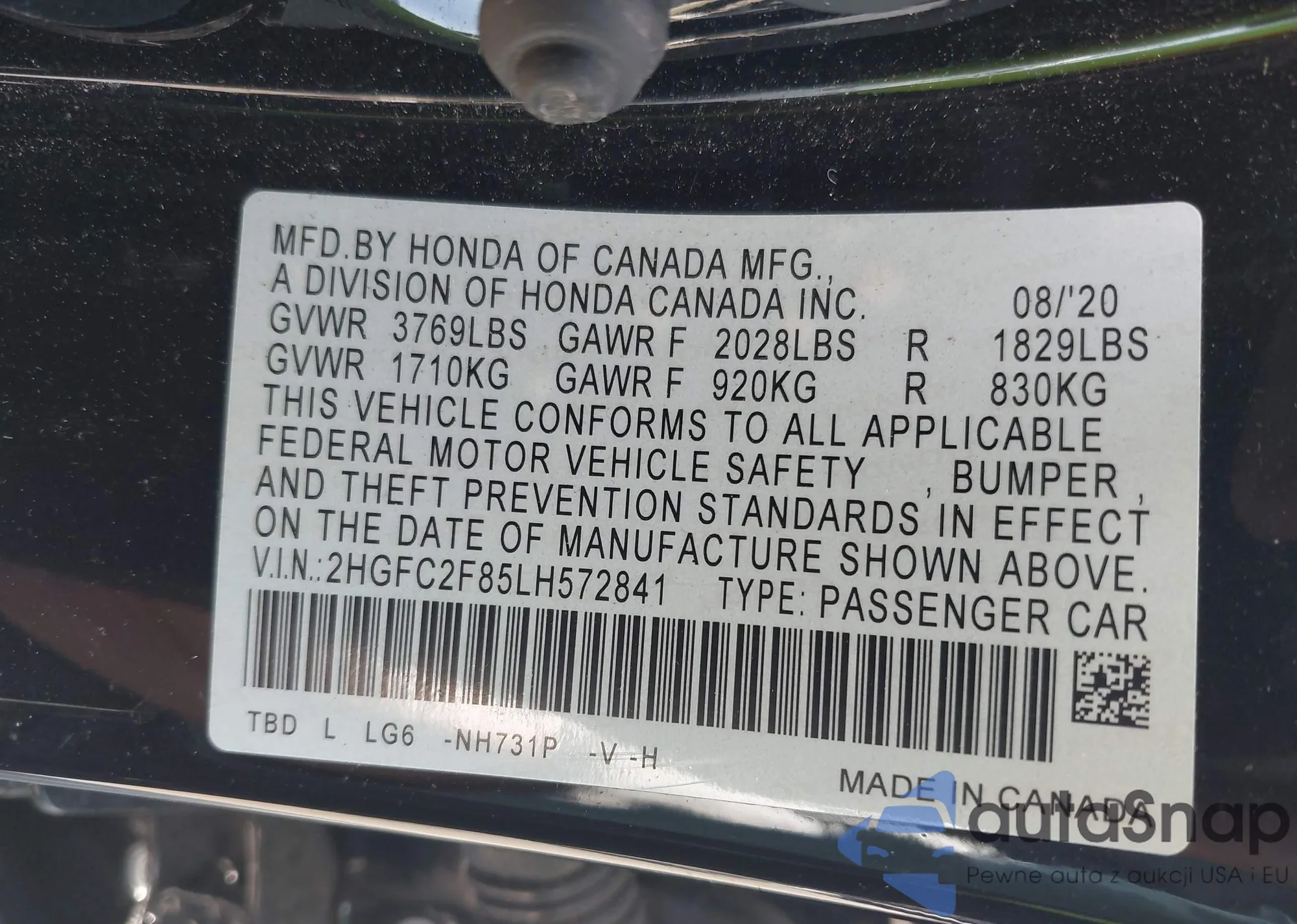 VIN: 2HGFC2F85LH572841