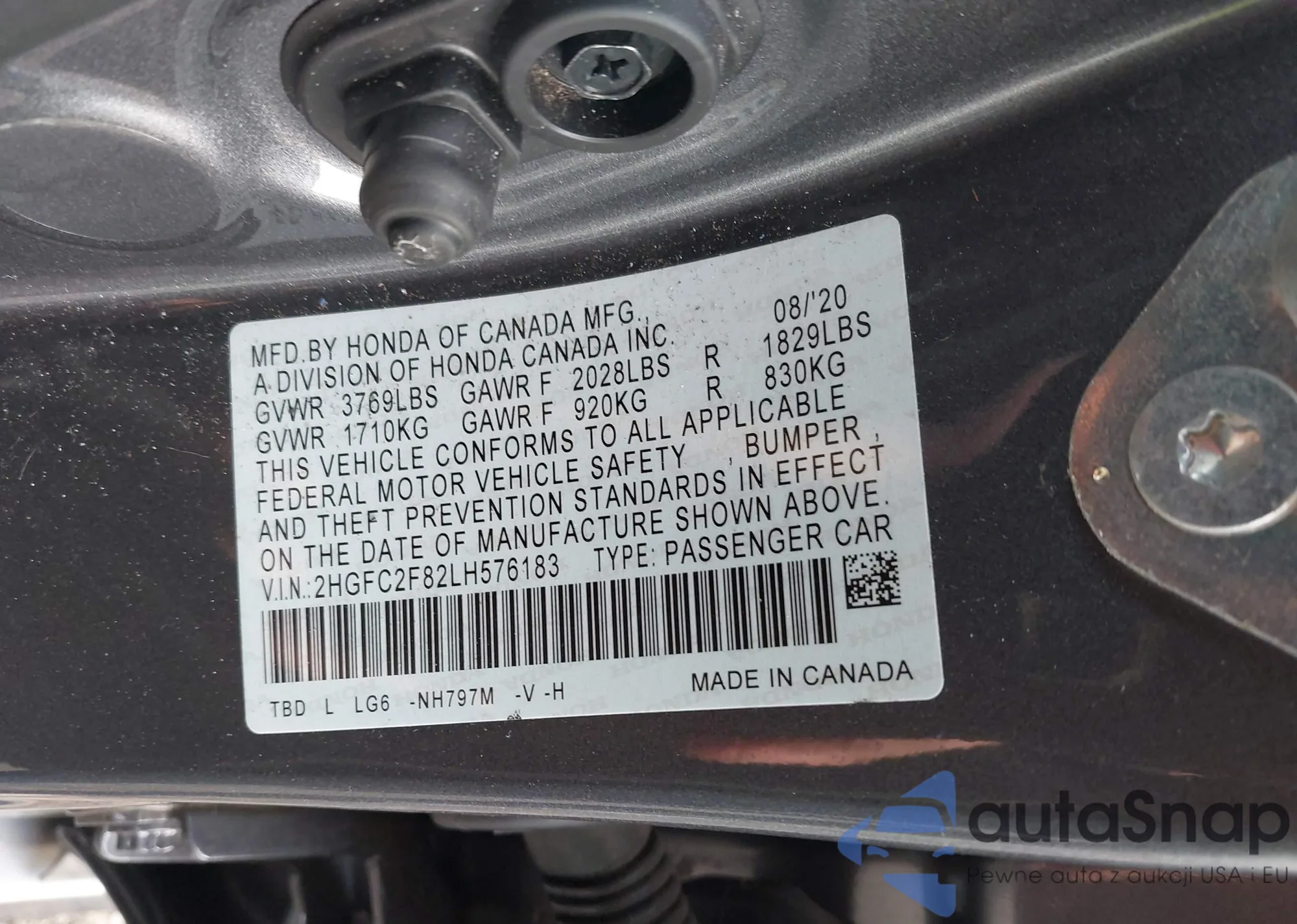 VIN: 2HGFC2F82LH576183