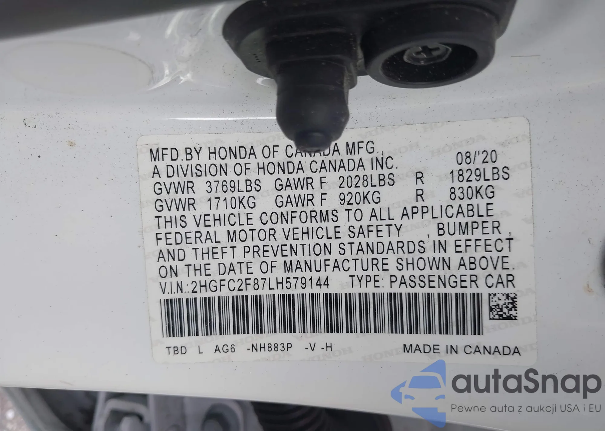VIN: 2HGFC2F87LH579144