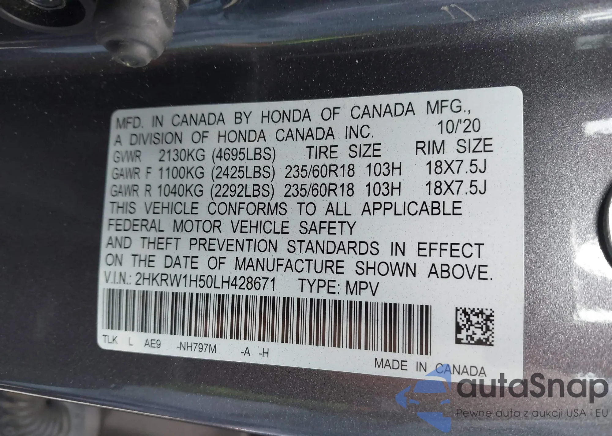 VIN: 2HKRW1H50LH428671