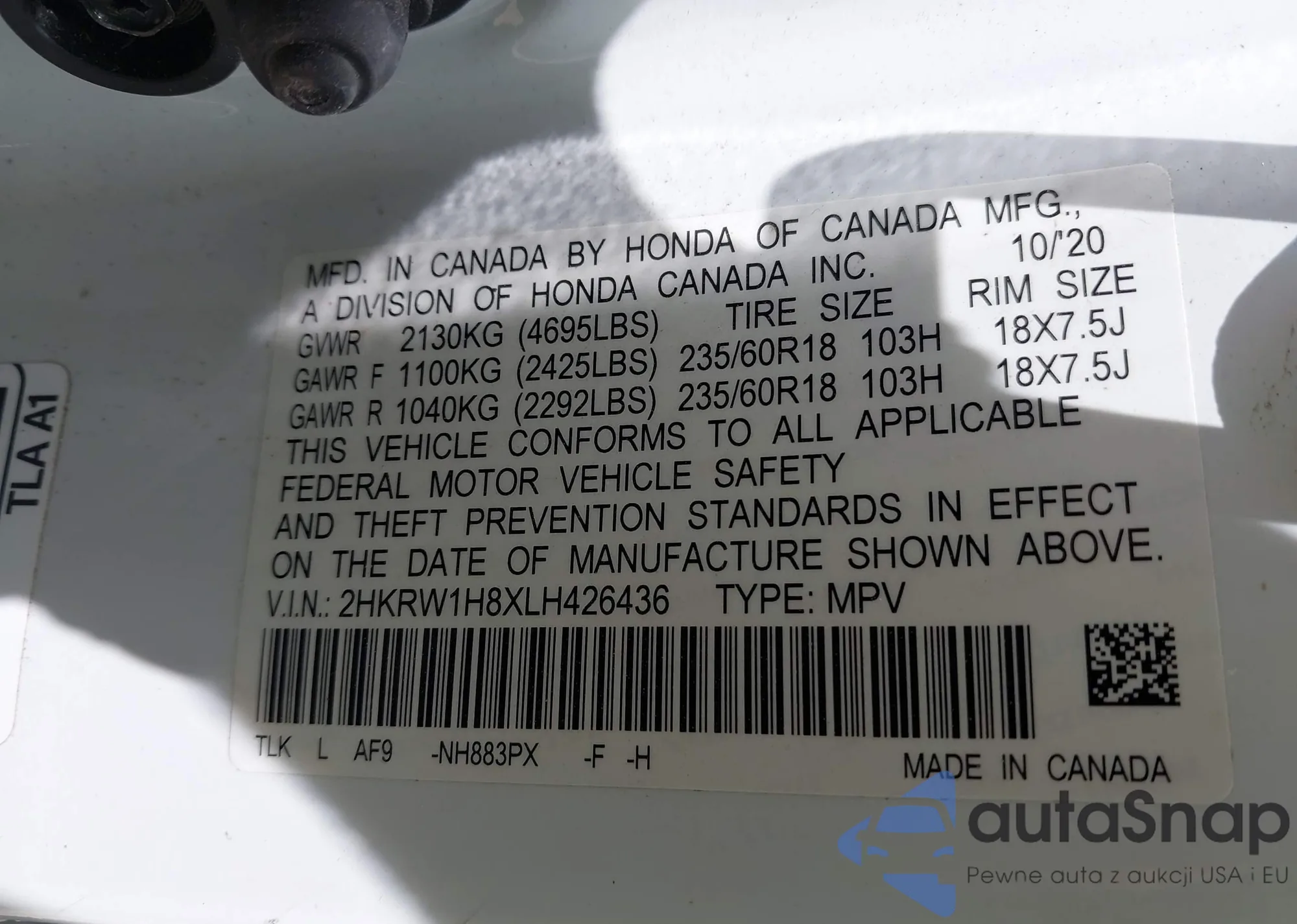 VIN: 2HKRW1H8XLH426436