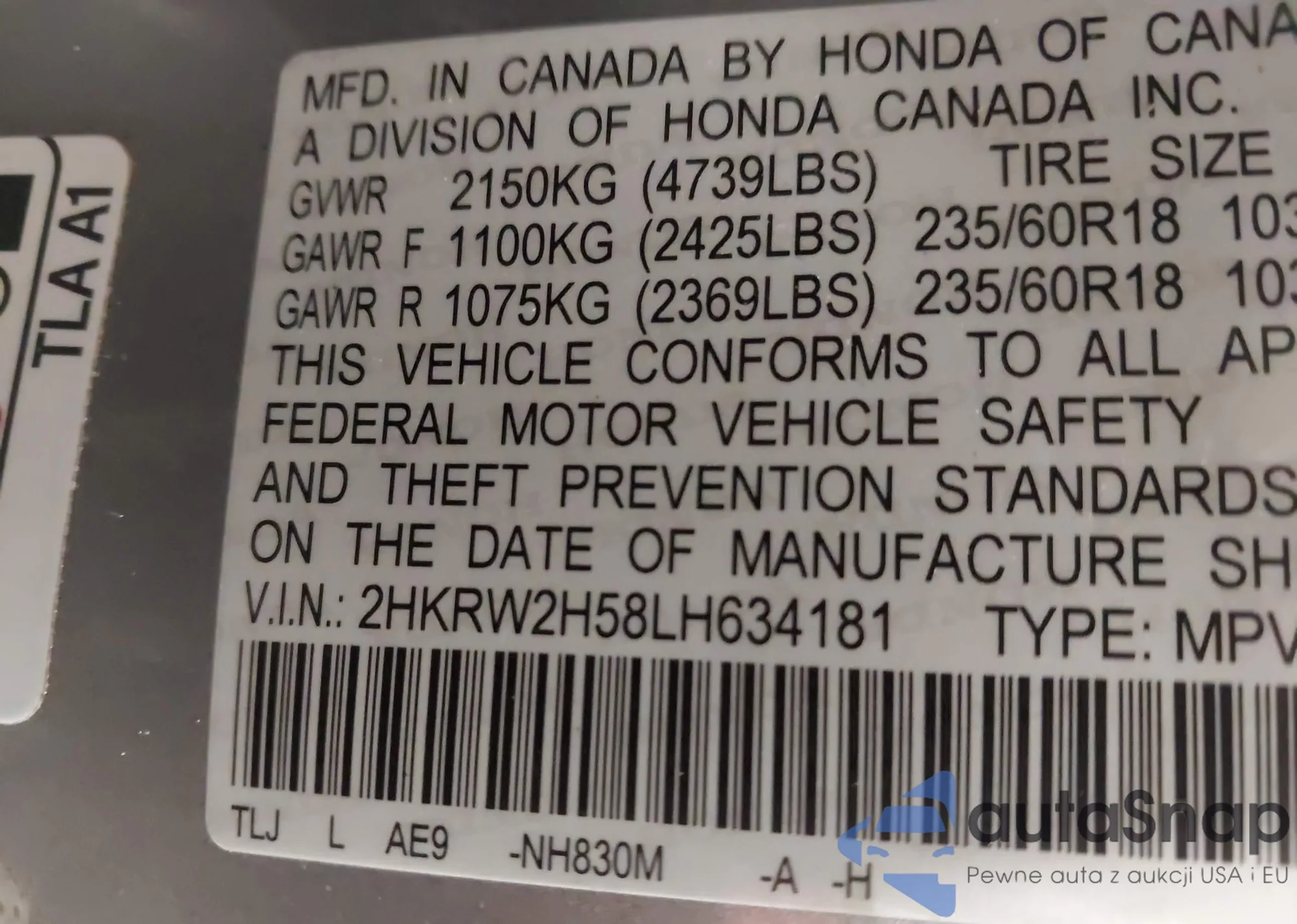 VIN: 2HKRW2H58LH634181