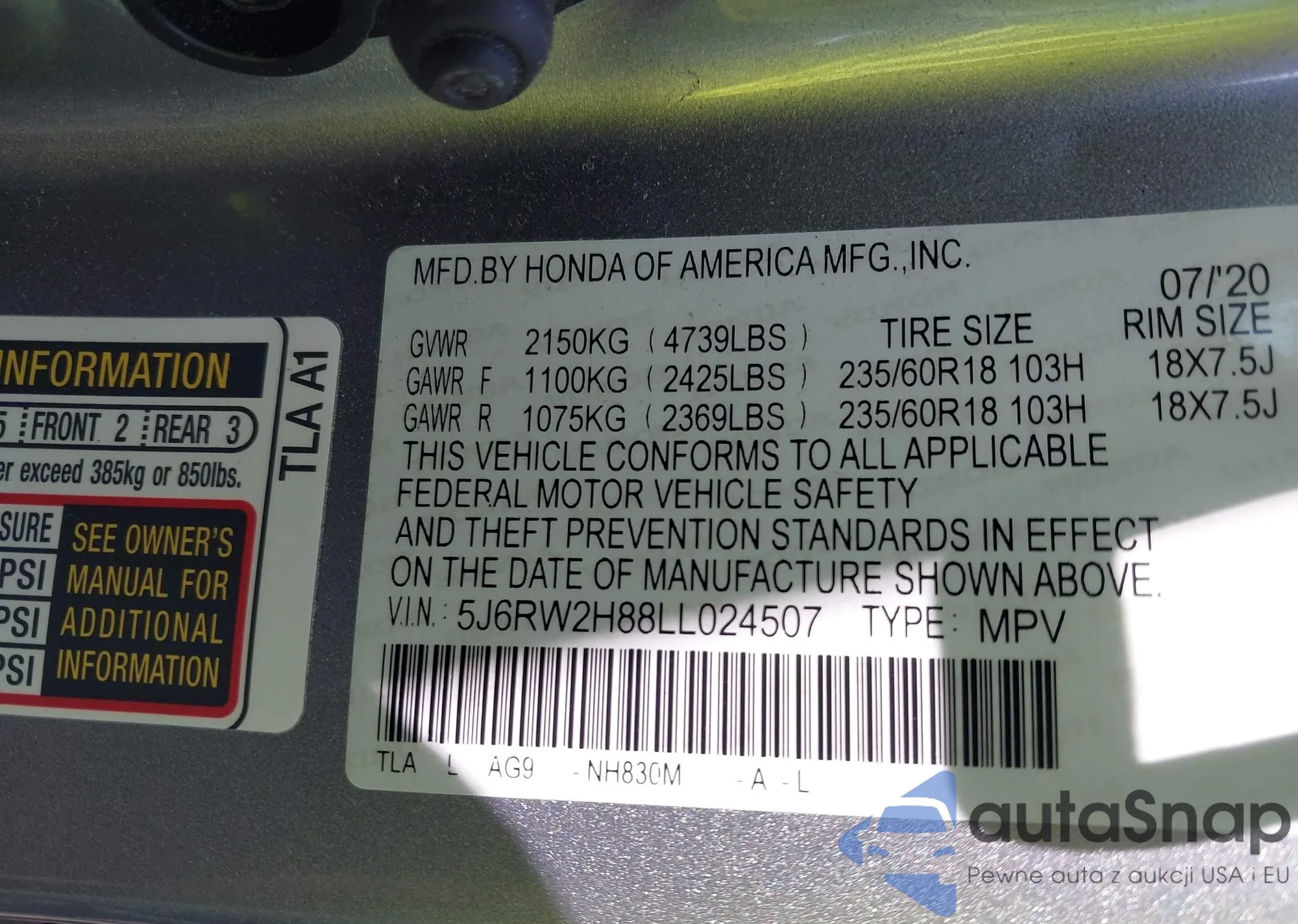 VIN: 5J6RW2H88LL024507