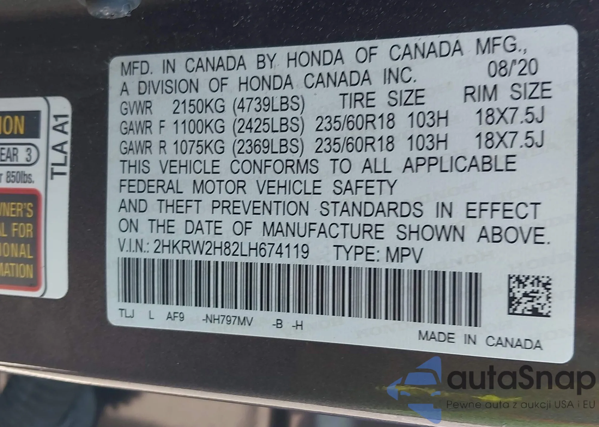 VIN: 2HKRW2H82LH674119
