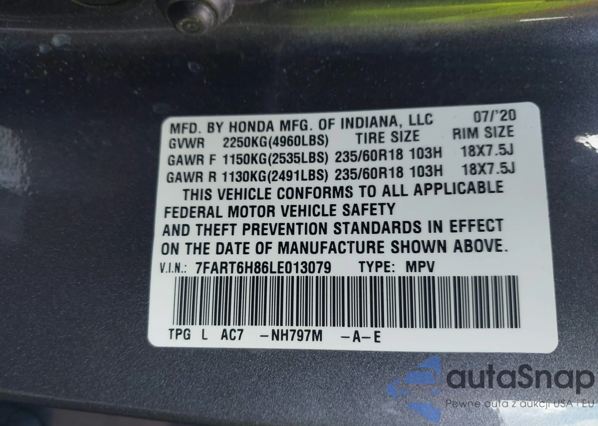 VIN: 7FART6H86LE013079
