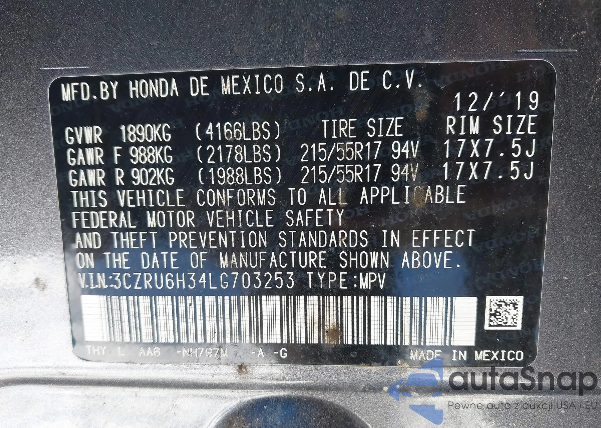 VIN: 3CZRU6H34LG703253